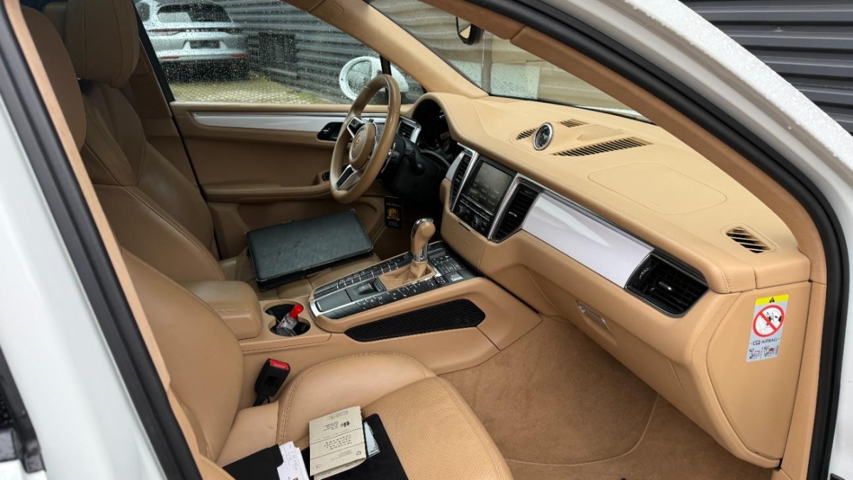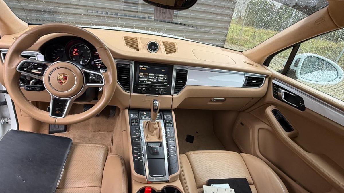Rote Bremszangen (v//h), Porsche Active Suspension Management (PASM), Kraftstofftank 75 Liter, Wartungsintervall-Anzeige, Auspuffanlage mit 2 Endrohren, Vorbereitung für Anhängevorrichtung, Bremsassistent (BAS), Katalysator geregelt, Bremsbelag-Verschleissanzeige, Einstiegsschienen mit Logo, Assist: Seitenaufprall-Schutzsystem, Ablagen in den Türen, Airbag: Airbag Beifahrer deaktivierbar, Lenkrad: Sportlenkrad, Sequentielles 7-Gang-Getriebe mit Automatikfunktion, Scheibenwischer vorne mit Intervall, Wegfahrsperre elektronisch, Gurtstraffer vorne, Mittelarmlehne hinten, Porsche Communication Management (PCM) - inklusiv erweitertem Navigationsmodul, Licht: Drittes Bremslicht LED, Licht: LED Heckleuchten, Dachhimmel in Alcantara, Airbag: Thorax Seitenairbag für Fahrer und Beifahrer, Cupholder vorne und hinten, Räder: Reifenreparatur-Set mit Kompressor, Stoff-/Alcantara-Ausstattung, Adaptive Sportsitze inkl. Komfort- Memory-Paket, Laderaumabdeckung, Tempomat mit Geschwindigkeitsbegrenzer, Licht: LED Blink- und Positionsleuchten, Antiblockiersystem (ABS), Höhenverstellbare Gurten vorne, Aluminium-Applikationen, Licht: LED-Tagfahrlicht, Bi-Xenon-Scheinwerfer inkl. Porsche Dynamic Light System (PDLS), Leichtmetallräder 'Macan Turbo' 19J, Heckscheibenheizung, Lenkrad: Multifunktionslenkrad mit Schaltwippen, Lenkrad: Lenkrad längs- und höhenverstellbar, Mittelkonsole mit Ablagefach, Regensensor für Scheibenwischer vorne, Licht: Fahrlichtassistent (automatisches Fahrlicht), Allradantrieb permanent, Seitenschutzleisten in Wagenfarbe, ISOFIX Kindersitzvorrichtung, Steckdose 12V, Auto Start-Stop-Funktion, Pollenfilter (Staubfilter), Aussenspiegel rechts und links beheizt, elektrisch verstell- / und einklappbar, Licht: Nebelschlussleuchte, Airbag: Curtain Airbag, Elektrische Fensterheber vorne + hinten mit Komfortschliessung, Paket: Lederpaket, Klima: 2-Zonen-Klimaautomatik, Aussentemperaturanzeige, Heckscheiben-Wisch-/Waschanlage, Ablagefach im Kofferraum, Bordcomputer, Airbag: Seitenairbags, Fahrstabilisierungssystem Porsche - Stability-Management (PSM), Heckklappe automatisch, Lackierung: Uni-Lackierung, Media: Bose Surround Soundsystem, Wärmeschutzverglasung, LED Nebelscheinwerfer, Multifunktionsanzeige, Elektronische Parkbremse, Zentralverriegelung mit Fernbedienung, Sitze: Rücksitzlehne geteilt abklappbar, Aktivkohlefilter (Geruchsfilter), Handschuhfach gekühlt, Leseleuchten, Beleuchtetes und abschliessbares Handschuhfach, Räder: Reifendruckkontrollsystem ( RDK ), Airbag: Airbag Fahrer und Beifahrer