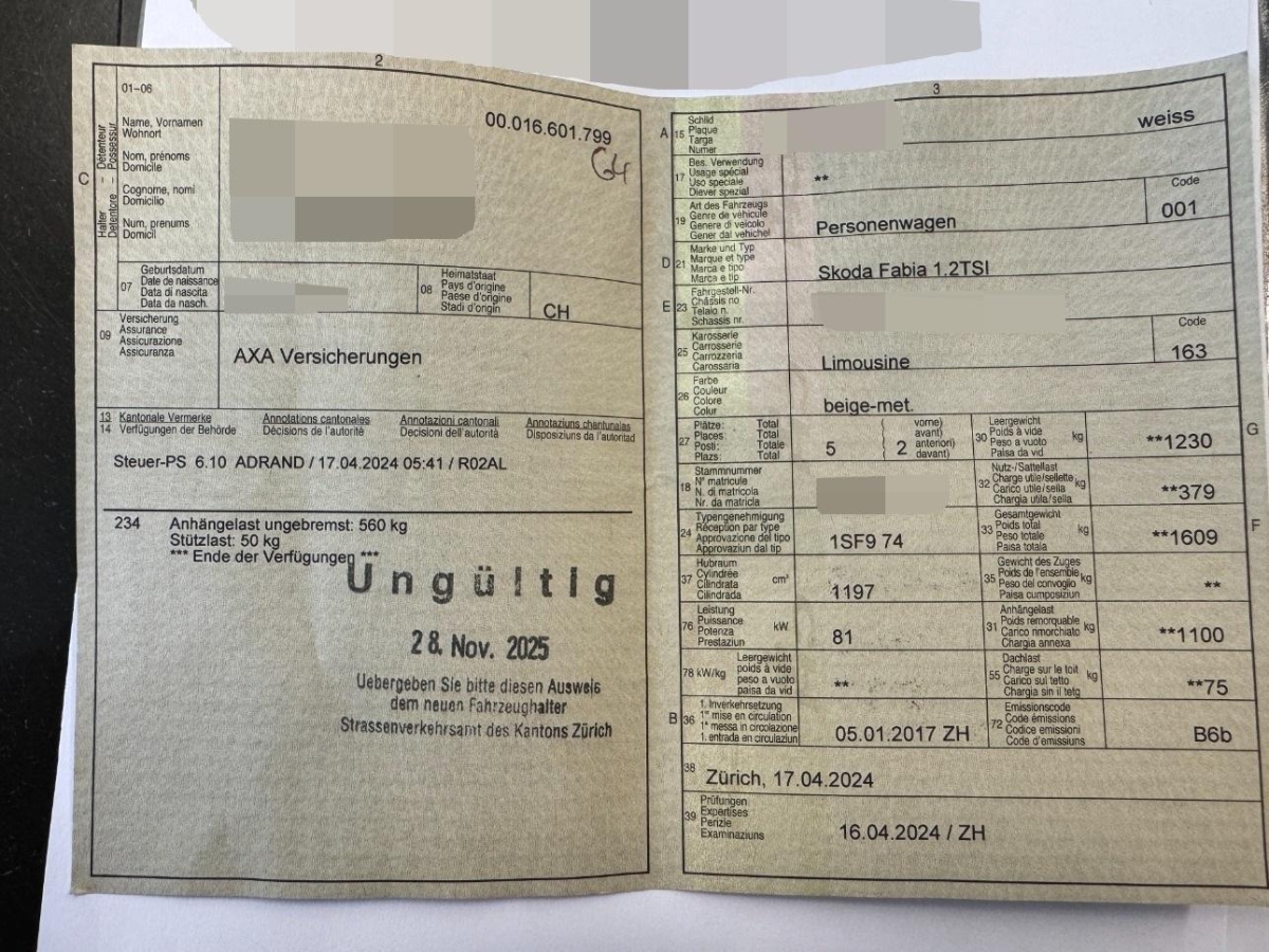 | Fahrzeugausweis | Vorhanden |