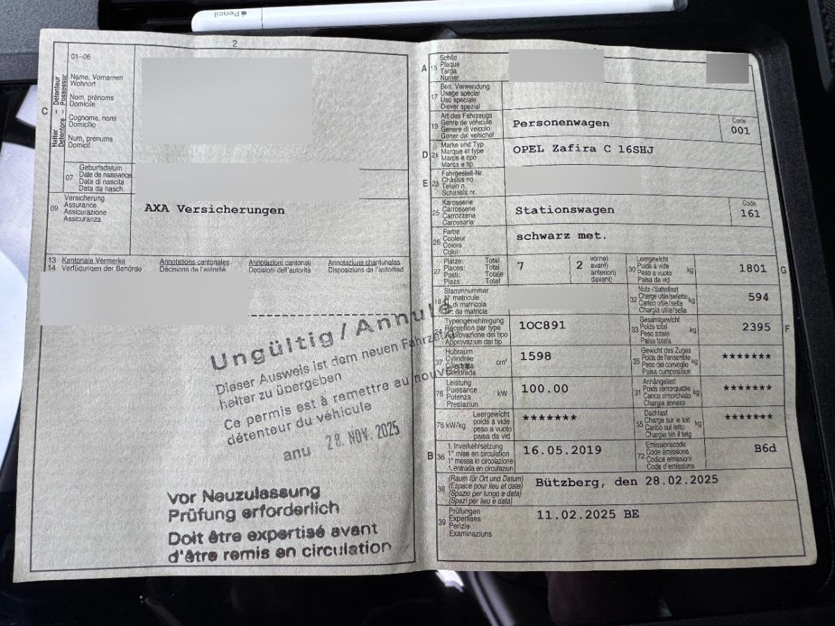 | Fahrzeugausweis | Vorhanden |