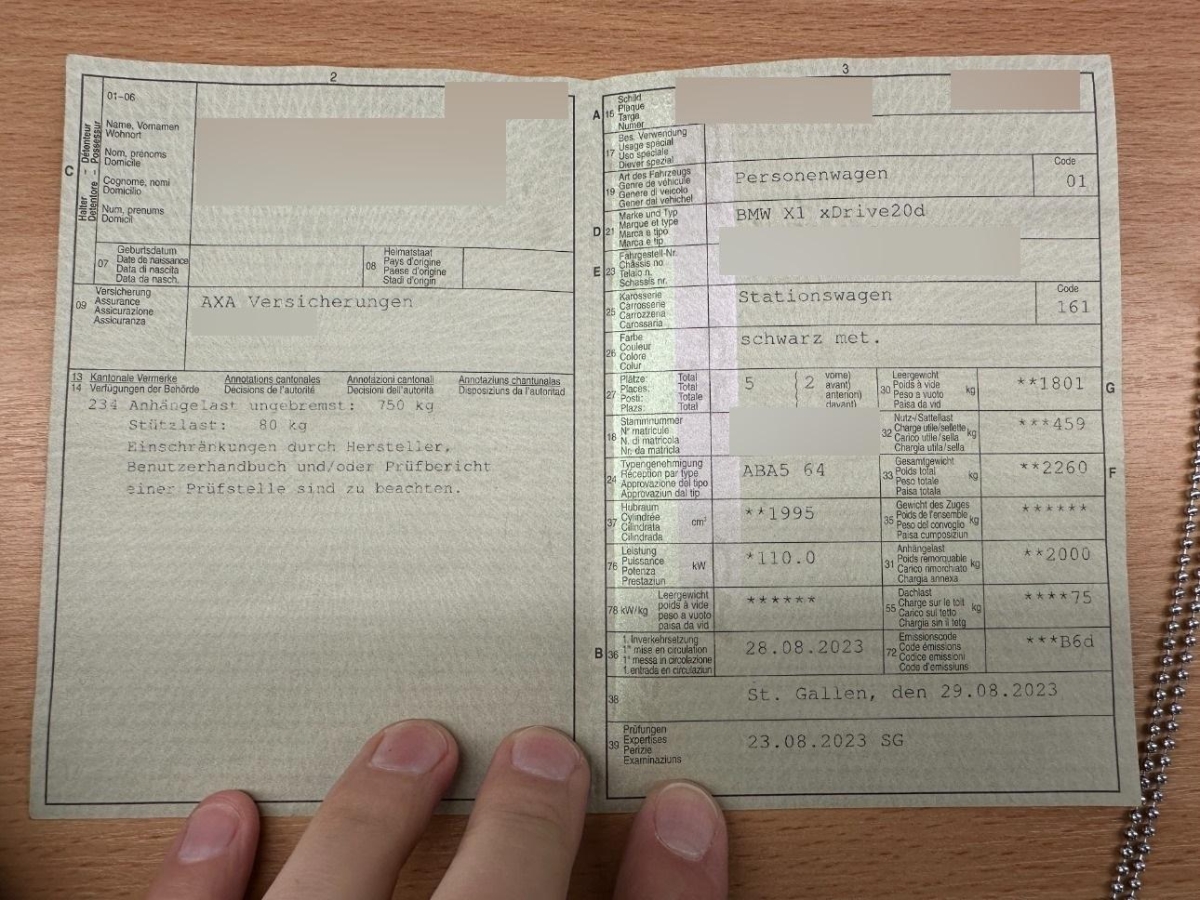 | Fahrzeugausweis | Vorhanden |