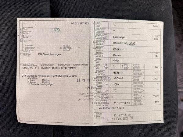 | Fahrzeugausweis | Vorhanden |