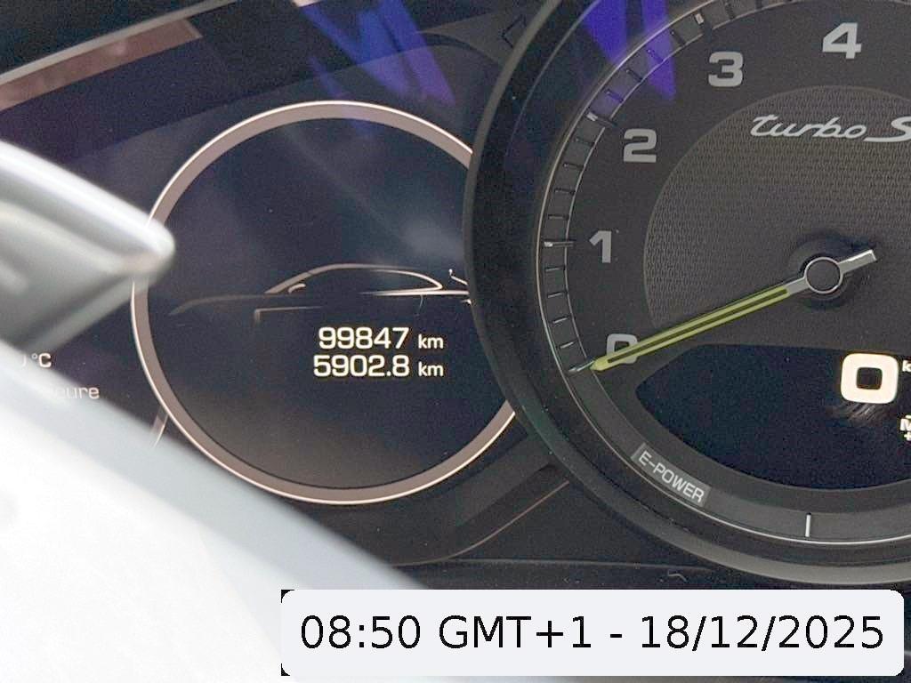 Luftauslassblenden in Wagenfarbe, Airbag: Thorax Seitenairbag für Fahrer und Beifahrer, Kopfstützen hinten, Sitze: Rücksitzlehne geteilt abklappbar, Kopfstützen mit gesticktem Logo, Heckscheibenheizung, Porsche Dynamic Chassis Control (PDCC), Innenlicht-Abschaltverzögerung, Ladekabel mit Tragtasche, Aussenspiegel rechts und links beheizt-, elektrisch verstell- / und einklappbar mit Bodenbeleuchtung - auf Fahrerseite automatisch abblendend, Katalysator geregelt, Klima: 2-Zonen-Klimaautomatik, Innen- und Aussenspiegel automatisch abblendend, Allradantrieb permanent, Bremssättel lackiert, Heckspoiler, geschwindigkeitsabhängig elektrisch ausfahrbar, Standklimatisierung, Schriftzug, Aktivkohlefilter (Geruchsfilter), Ladekabel AC-Normalladen mit bis zu 3.6 kW, Media: 2 USB-Ladeanschlüsse im Fond, Fahrstabilisierungssystem Porsche - Stability-Management (PSM), Lenkrad: Lenkrad-Wippschaltung (Paddles), Steckdose 12V, Ablagen in den Türen, Räder: Reifendruckkontrollsystem, ISOFIX Kindersitzvorrichtung, Leseleuchten, Assist: Porsche Traction Management (PTM), Porsche Entry & Drive, Beide Make up-Spiegel beleuchtet, Beleuchtetes und abschliessbares Handschuhfach, Memory-Paket (Vordersitze, Lenksäule und Aussenspiegel el.verstellbar mit Memory inkl.el. Lordose für Vordersitze, Cupholder hinten, Porsche Active Suspension Management (PASM): Luftfederung inkl. Niveau- regulierung, Vordersitze elektrisch verstellbar 14-fach, Memoryfunktion, Räder: Reifenreparatur-Set mit Kompressor, Heckspoiler Schwarz, Licht: LED-Tagfahrlicht, Porsche Communication Management (PCM) - inklusiv erweitertem Navigationsmodul, Servolenkung, Media: Porsche Connect inkl. Apple CarPlay - Online-Navigation (vgl. Porsche Communication Management) - Musik-Streaming und Online Radio - Remote Services - E-Mobility Services u.a. zum Lademanagement, der Steuerung der Fahrzeug Standklimatisierung oder dem Reichweitenmanagement - Zahlreiche, weitere Porsche Connect Dienste, Getriebe: Porsche Doppelkupplungsgetriebe (PDK) Sequentielles 8-Gang-Getriebe mit Automatikfunktion, Sitze: Einzelsitze hinten, Kofferraumbeleuchtung, Wärmeschutzverglasung, Licht: LED Heckleuchten, Dachhimmel in Alcantara, Interieur Paket Nussbaum Wurzel, Porsche Torque Vectoring Plus (PTV Plus), Assist: Seitenaufprall-Schutzsystem, Komfortzugang, LED-Scheinwerfer inkl. Porsche Dynamic Light System Plus (PDLS), Drehzahlmesser, Assist: Tempomat, Paket: Sport Chrono Paket, Bordcomputer, Mittelkonsole mit Ablagefach, Licht: Fahrlichtassistent (automatisches Fahrlicht), 4 Leichtmetallräder 21J 911 Turbo Design, Media: Bose Surround Soundsystem, Elektronische Parkbremse, Bodenbeleuchtung in Aussenspiegel integriert, Airbag: Airbag Fahrer und Beifahrer, Wegfahrsperre elektronisch, Bremsbelag-Verschleissanzeige, Einstiegsschienen Aluminium mit Logo, Mittelarmlehne vorne, mit 2 Getränkehaltern, Airbag: Knie-Airbag für Fahrer und Beifahrer, Assist: Parkassistent vorne und hinten, Seitenscheibenleisten in Silber ( hochglanz ), Info-Display, Auto Start-Stop-Funktion, Airbag: Curtain Airbag, Automatische Heckklappenbetätigung, Lederausstattung Glattleder, Regensensor für Scheibenwischer vorne, Sitze: Komfortsitze, Antiblockiersystem (ABS), Ablagefach in Armlehne hinten, Porsche Active Aerodynamics (PAA), Pollenfilter (Staubfilter), Diebstahlwarnanlage mit Innenraumüberwachung, Zentralverriegelung mit Fernbedienung, Ladekabelset, Airbag: Window-Kopfairbags, Heckscheiben-Wisch-/Waschanlage, Laderaumrollo, Lenkrad: Multifunktions-Sportlenkrad in Leder, Teppichfussmatten, Keramik-Bremsanlage, Bremsassistent (BAS), Fussraumbeleuchtung vorne, Sitze: Sitzheizung vorne und hinten, Lackierung: Metallic-Lackierung, 80-l-Kraftstofftank