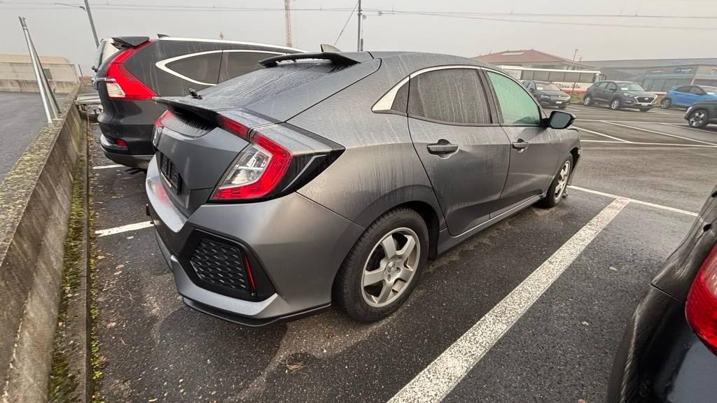 4 Leichtmetallfelgen 17J mit Pneu, 3-Punkt-Sicherheitsgurte auf allen Plätzen, Licht: LED-Tagfahrlicht, Dunkel getönte Seiten- und Heckscheibe, Heckscheibenheizung, Licht: Nebelschlussleuchte, ISOFIX Kindersitzvorrichtung, Fahrersitz höhenverstellbar, Audiosystem, Sitze: Vordersitze heizbar, Mittelarmlehne hinten, Make up-Spiegel rechts, Rücksitzlehne geteilt abklappbar, Mittelarmlehne vorne, Aussentemperaturanzeige, 8 Lautsprecher, Elektrische Fensterheber vorne + hinten, Scheibenwischer vorne mit Intervall, Ambientebeleuchtung, Innenraumbeleuchtung, Lenkrad längs- und höhenverstellbar, Assist: Spurhaltewarnung LDW (Lane Departure Warning), Pollenfilter (Staubfilter), Adaptiver Tempomat ACC, Gurtstraffer vorne, 12-Volt-Steckdose hinten, 6-Gang-Getriebe, Licht: Scheinwerfer-Waschanlage, Steckdose 12V, Berganfahrhilfe (Hill Assist Control - HAC), Seitenfenster-Zierleisten verchromt, Pedalerie mit Aluminiumauflage, Getönte Scheiben, Airbag: Airbag Fahrer und Beifahrer, Wegfahrsperre elektronisch, Kollisionswarnung, Licht: Halogenscheinwerfer, Assist: Bremsassistent (BAS), Aussenspiegel in Wagenfarbe, Geschwindigkeitsbegrenzer, Aussenspiegel rechts und links beheizt, elektrisch verstell- / und einklappbar, Regensensor für Scheibenwischer vorne, Fahrwerk: Servolenkung, Warnblinkautomatik bei Vollbremsung, Assist: Rückfahrkamera, Window-Kopfairbags, LKAS (Lane Keeping Assist System), Digital Uhr, Nebelscheinwerfer, Leseleuchten vorne, Gangempfehlung, 2-Zonen-Klimaautomatik, Türgriffe aussen in Wagenfarbe, LED Blinker im Aussenspiegel, Lenkrad und Schalthebelgriff in Leder, Laderaumabdeckung, Diebstahlwarnanlage, Make up-Spiegel links, Media: Digitaler Radioempfang (DAB/DAB+), Beleuchtetes Handschuhfach, Assist: Kollisionsschutz-Bremssystem CMBS (Collision Mitigation Brake System), Katalysator geregelt, Make up-Spiegel beleuchtet für Beifahrer, Kühlergrill schwarz, Shark-Fin-Antenne, Honda Connect mit Navigationssystem Garmin (Apple CarPlay, DAB/DAB+, 2xUSB, HDMI-Port, Internet, Touchscreen), Kartentaschen an den Rückenlehnen, Assist: Verkehrszeichenerkennung, Lichtsensor, ABS, EBD elektronische Bremskraftverteilung, Licht: Coming-home-Funktion, Kofferraumbeleuchtung, Seitenairbags, Radiofernbedienung, Elektronisches Stabilitäts-Programm (VSA), Make up-Spiegel beleuchtet für Fahrer, Media: Bluetooth Freisprecheinrichtung, Höhenverstellbare Gurten vorne, Kreuzstütze für Fahrersitz elektrisch verstellbar, Elektronische Parkbremse, Licht: Drittes Bremslicht, Räder: Reifenreparatur-Set (Tire Fit), Assist: Einparkhilfe vorne und hinten, Stoff-Ausstattung