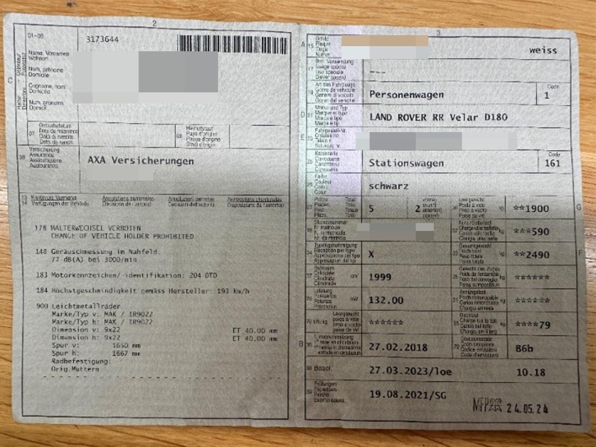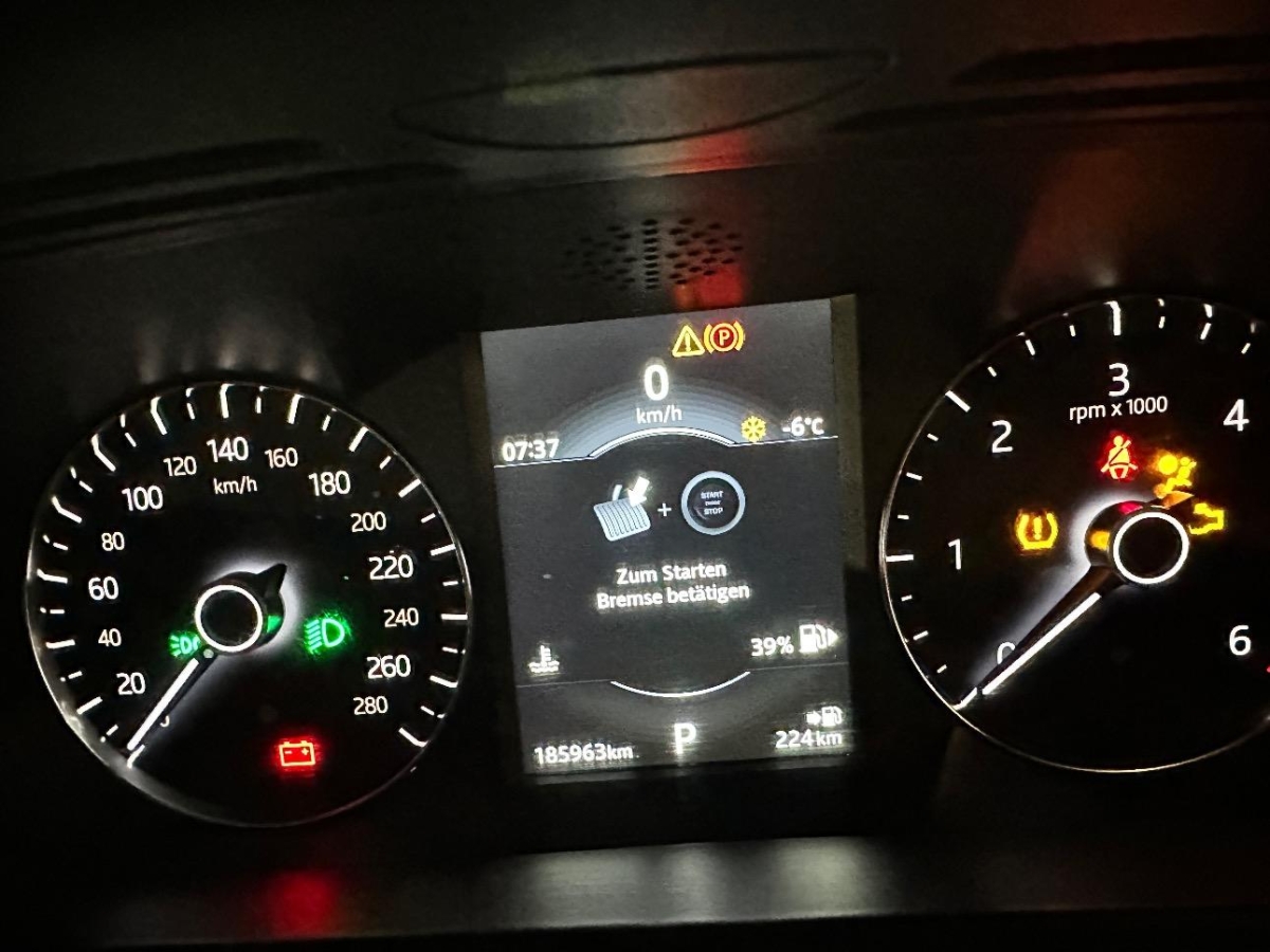 Räder: Reifenreparatur-Set (Tire Fit), Assist: Bergabfahrhilfe (Hill Descent Control, HDC), LED-Tagfahrlicht, ISOFIX-Befestigungspunkte für Kindersitz an den äusseren Rücksitzen, Scheibenwischer vorne mit Intervall, Beide Make up-Spiegel beleuchtet, Cornering Brake Control (CBC), Tageskilometerzähler, Spurwechselwarnung, Airbag: Knie-Airbag für Fahrer, Pollenfilter (Staubfilter), Lenkrad: Multifunktionslenkrad in Leder, Mittelkonsole mit Ablagefach, Getriebe: 8-Stufen-Automat sequentiell, Spurverlassenswarnung, Ganzjahresreifen, Bordcomputer, Dachhimmel, Airbag: Window-Kopfairbags, Heckscheibenheizung, Park Distance Control vorne und hinten, Media: Soundsystem, Assist: Rückfahrkamera, Laderaumbeleuchtung, Lenkrad mit Schaltwippen, Gurtstraffer vorne, Airbag: Seitenairbag für Fahrer und Beifahrer, Fussraumbeleuchtung, Getönte Scheiben, Fahrwerk: Terrain Response, Türgriffe aussen in Wagenfarbe, Überroll-Schutzsystem, Fahrerinformationssystem mit 5''- Farbdisplay, Abschliessbares Handschuhfach, Spurhalteassistent, Wassertemperaturanzeige, Licht- und Regensensor, Aussenspiegel rechts und links beheizbar und elektrisch verstellbar, Reifendruck-Kontrollanzeige, Digital Uhr, Stopp-/Start-System, Lenkrad längs- und höhenverstellbar, Velours-Ausstattung, 12-Volt-Steckdose vorne, Anhänger Stabilisierungkontrolle TSA, Fahrwerk: Torque Vectoring, Klima: 2-Zonen-Klimaautomatik, Tempomat mit Geschwindigkeitsbegrenzer, Media: Bluetooth Freisprecheinrichtung, Servolenkung geschwindigkeitsabhängig, Drehzahlmesser, 3-Punkt-Sicherheitsgurte auf allen Plätzen, Alu-Räder im 15-Speichen-Design 18 J, Heckspoiler, Seitenaufprall-Schutzsystem, Dach in Wagenfarbe, Assist: Warnblinkautomatik bei Vollbremsung, Start-/Stop-Knopf, Dynamische Stabilitätskontrolle (DSC), Laderaumabdeckung, Elektrische Fensterheber vorne + hinten, Licht: LED Scheinwerfer, Assist: Elektronischer Bremskraftverteilung EBD, Mittelarmlehne hinten, Applikationen Cosmic Grey, Heckscheiben-Wisch-/Waschanlage, Licht: Drittes Bremslicht, Müdigkeitserkennung, ABS und ETC, Sitze: Rücksitzlehne geteilt abklappbar, Mittelarmlehne vorne, Bremsassistent (BAS), Assist: Elektronische Parkbremse, Zentralverriegelung mit Fernbedienung, Allradantrieb permanent, Sitze: Vordersitze manuell verstellbar, Airbag: Airbag Fahrer und Beifahrer, Höhenverstellbare Gurten vorne, Cupholder vorne, Partikelfilter und Oxydationskatalysator, 12 Volt-Steckdose im Laderaum, Wegfahrsperre elektronisch, Media: Sprachsteuerung, Einstiegsschienen vorne, Licht: Nebelschlussleuchte, Nichtraucherausführung, Keyless Entry