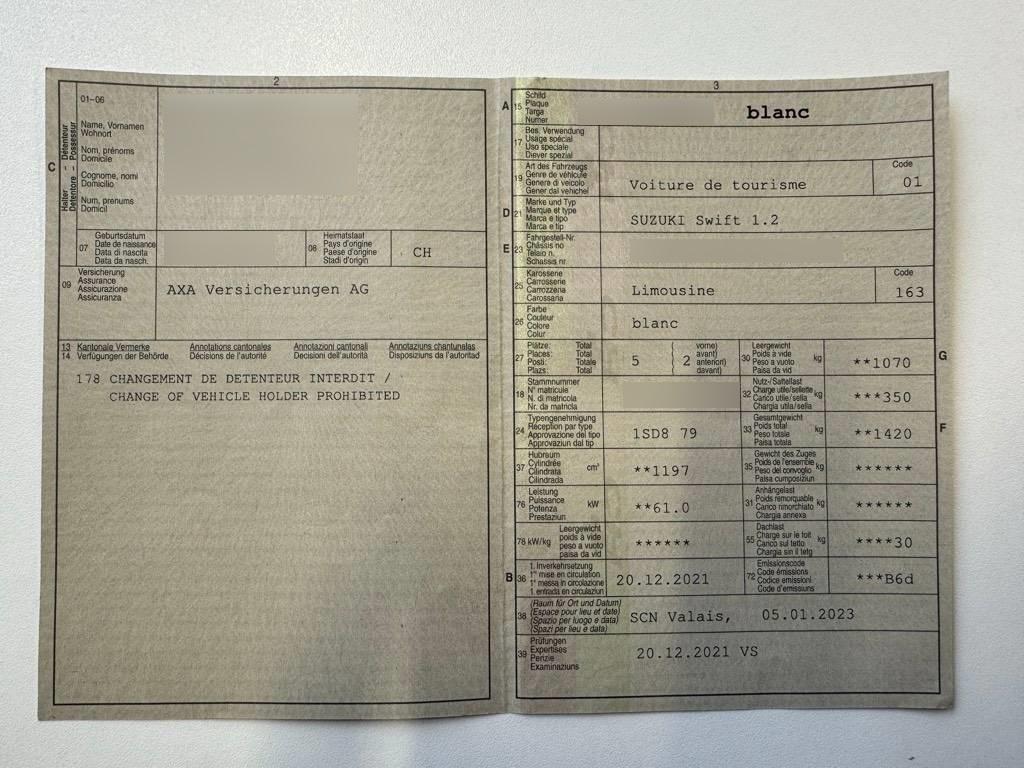 | Fahrzeugausweis | Vorhanden |