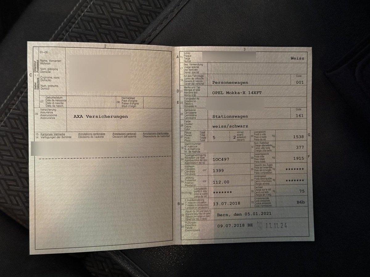 | Fahrzeugausweis | Vorhanden |