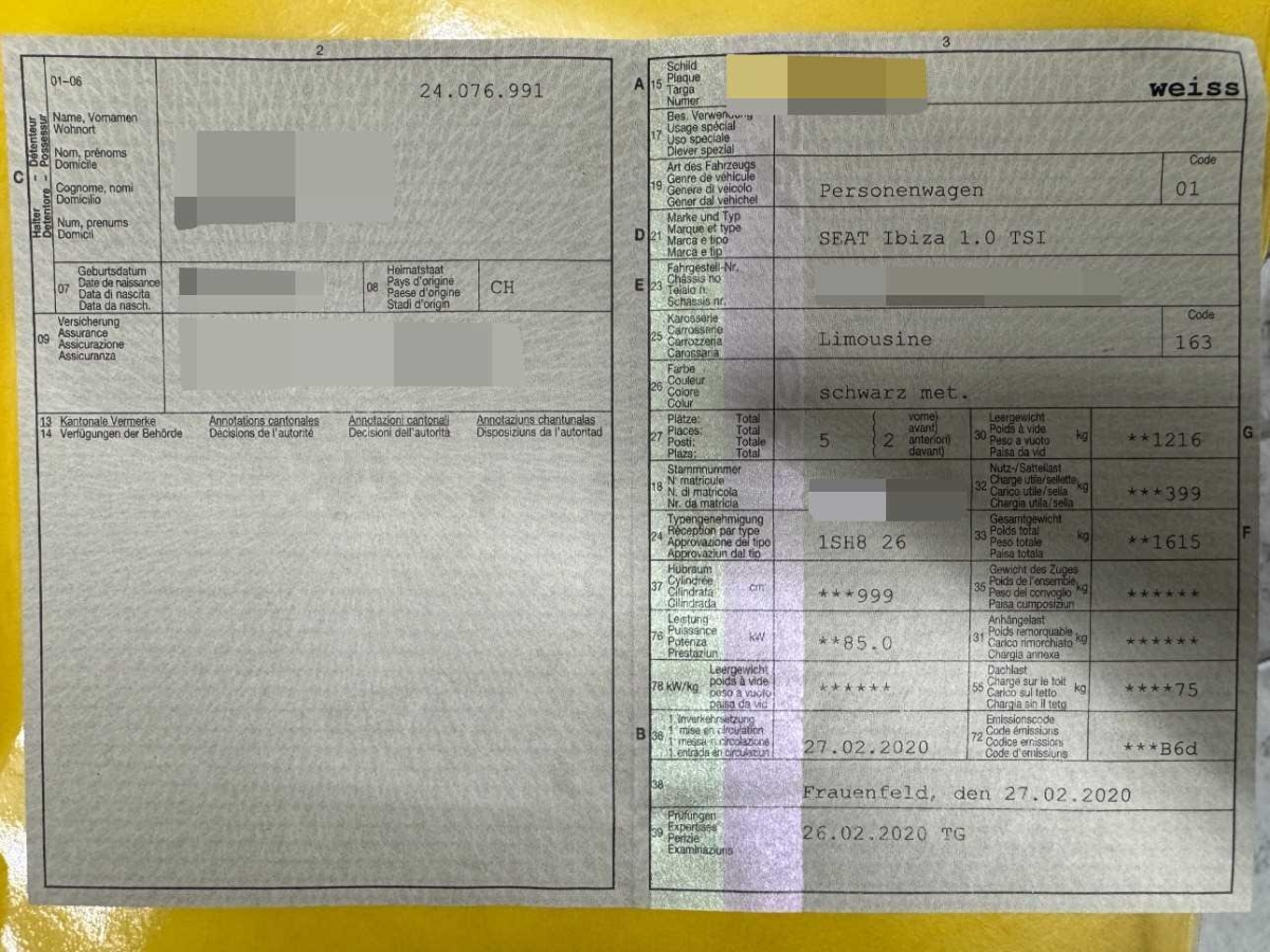 | Fahrzeugausweis | Vorhanden |