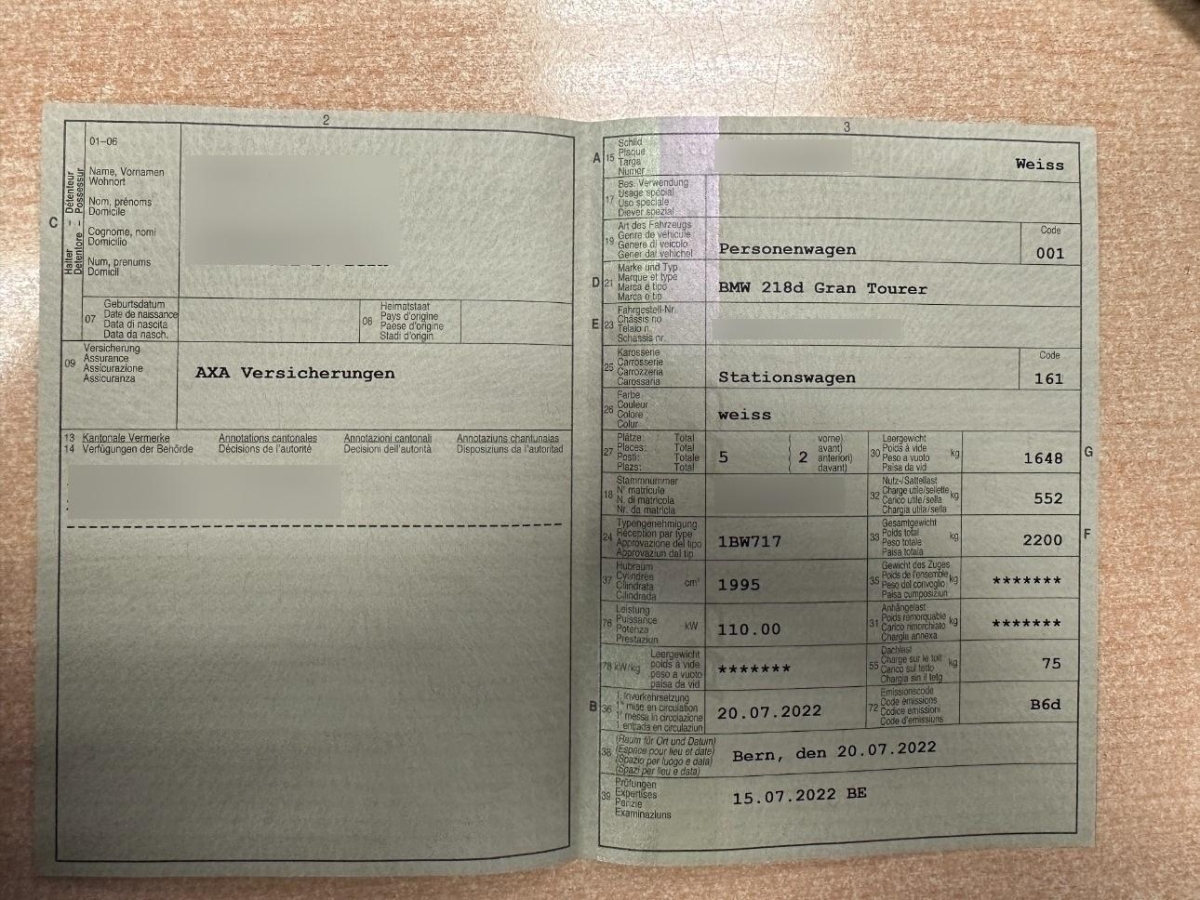 | Fahrzeugausweis | Vorhanden |