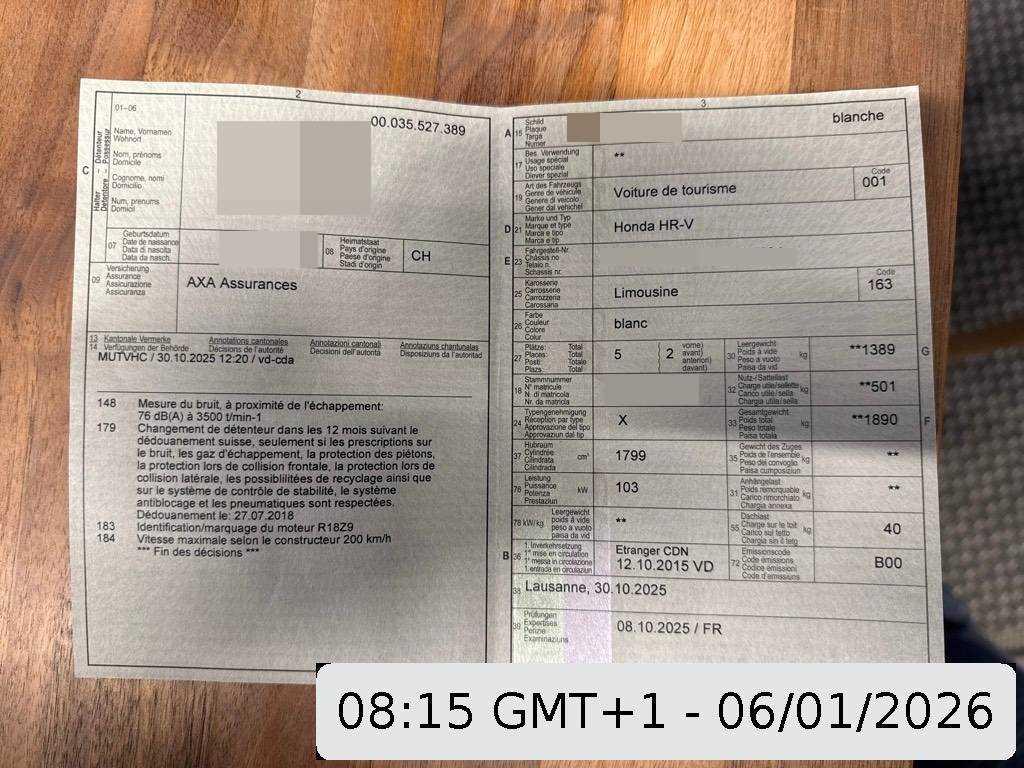 | Fahrzeugausweis | Vorhanden |