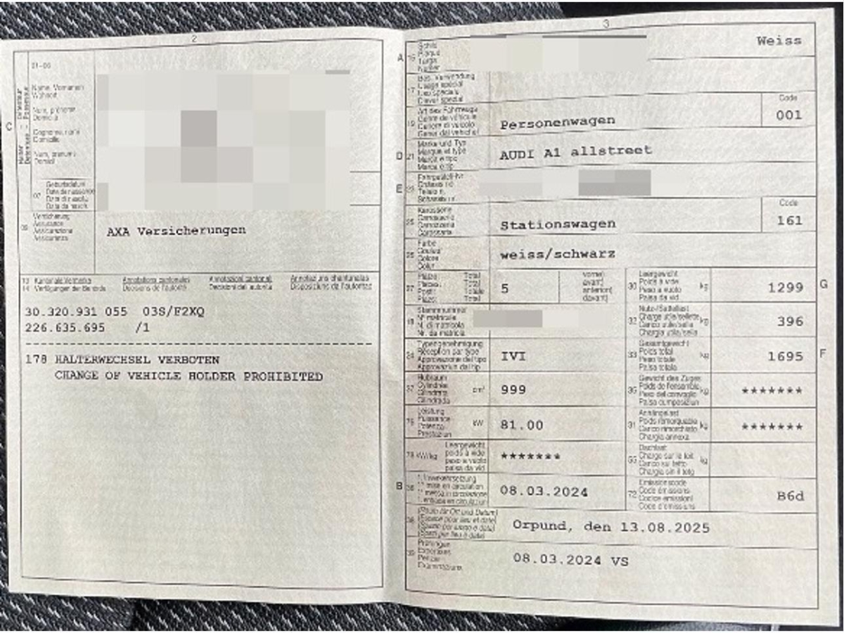 | Fahrzeugausweis | Vorhanden |