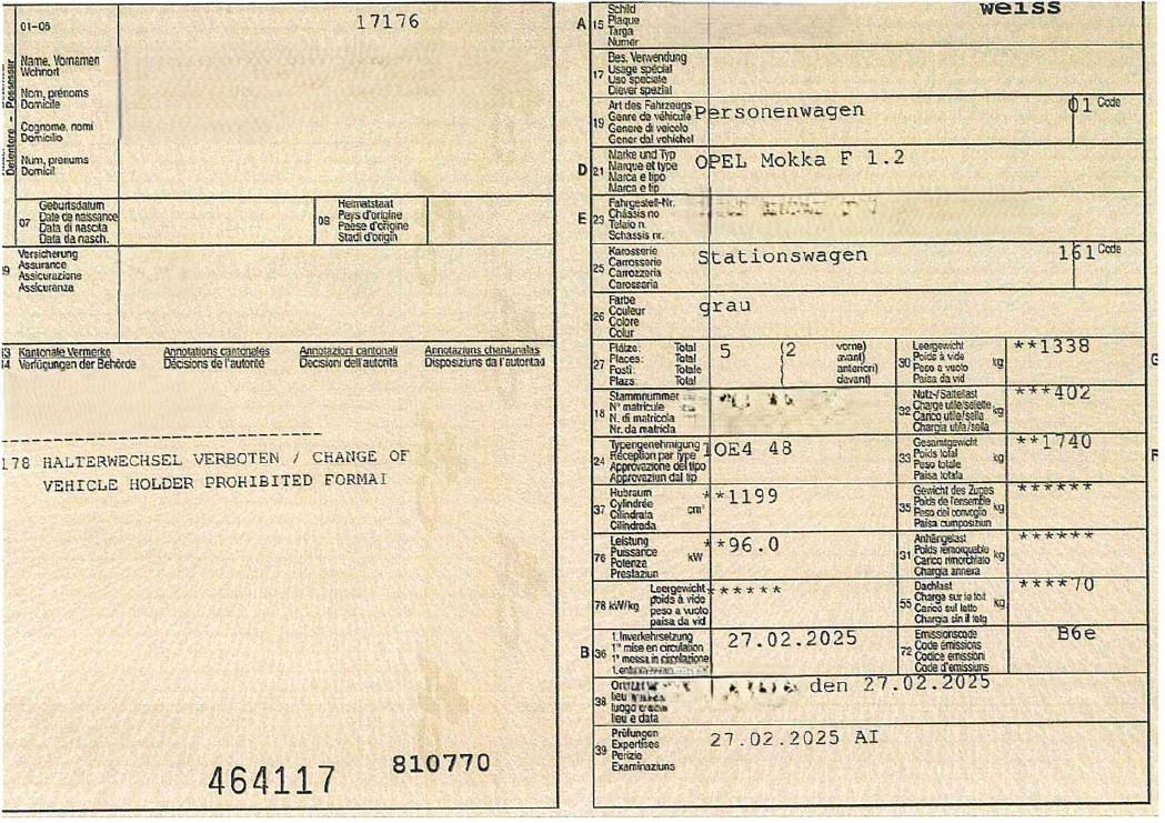 | Fahrzeugausweis | Vorhanden |