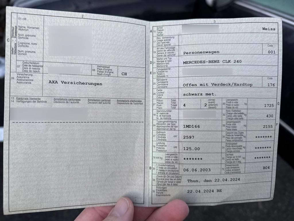 | Fahrzeugausweis | Vorhanden |