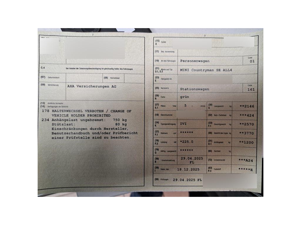 | Fahrzeugausweis | Vorhanden |