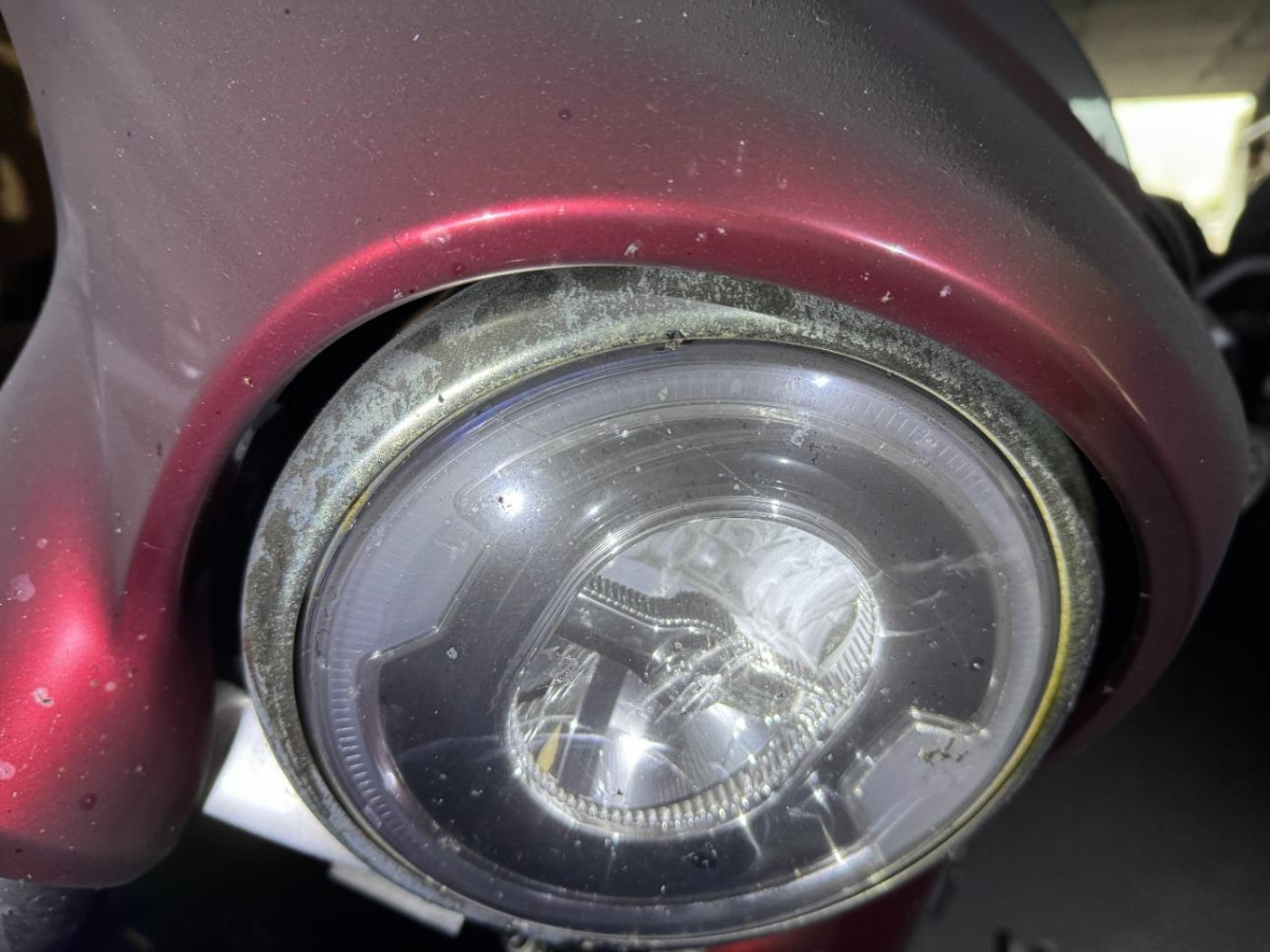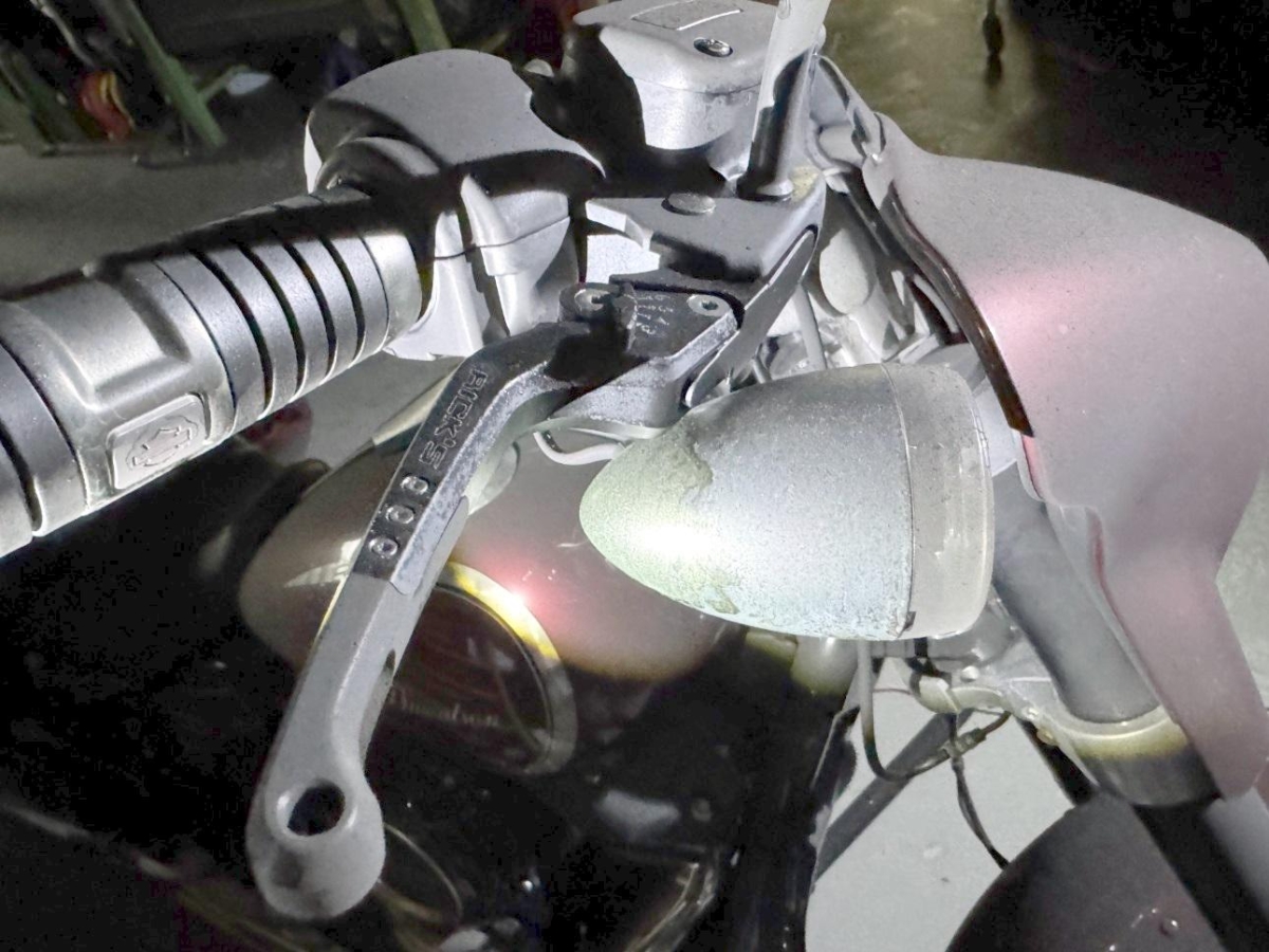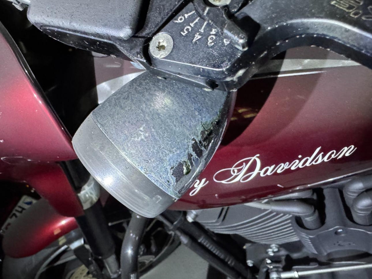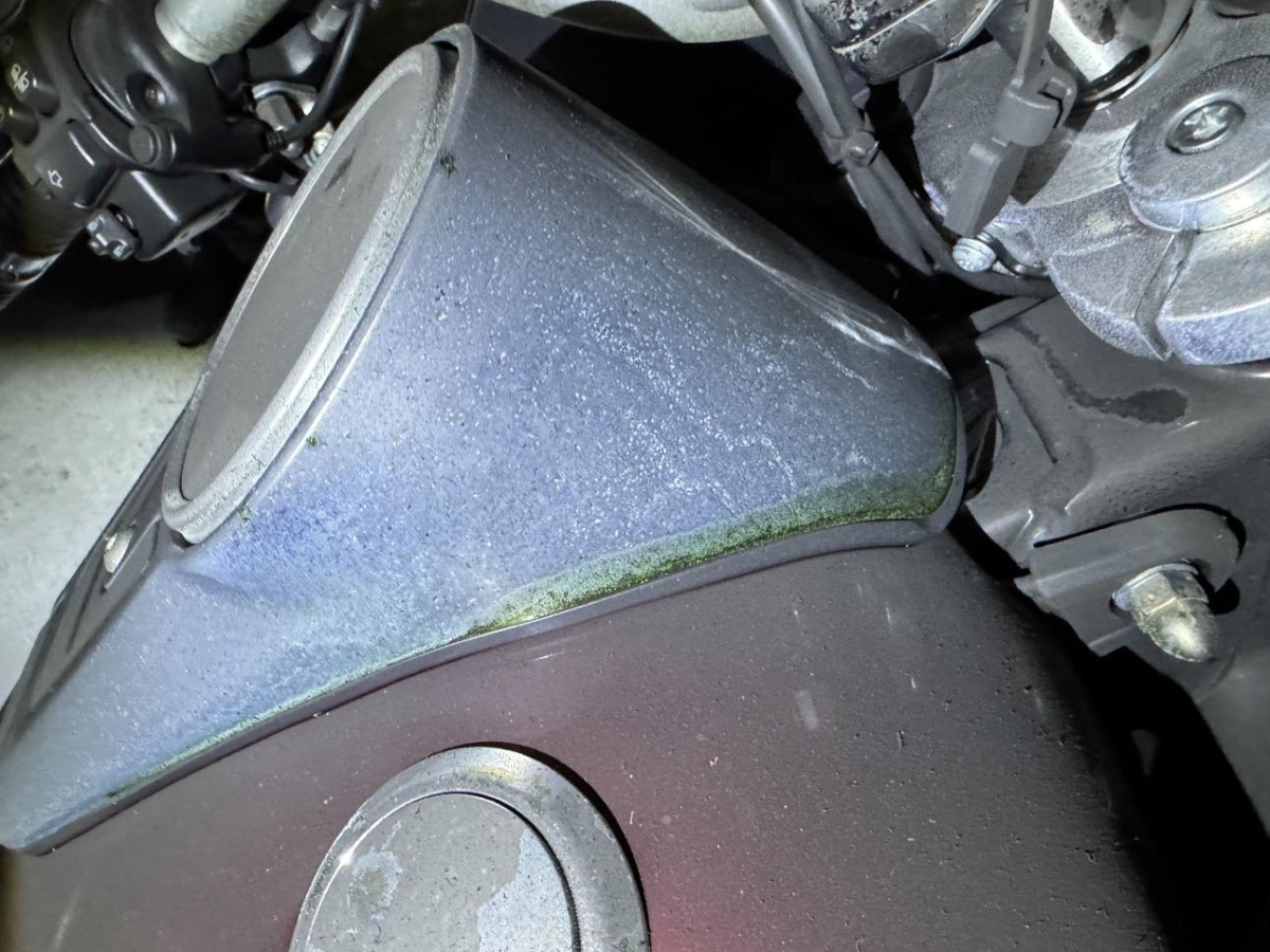 Info - Beschädigte Teile : Ganzes Motorrad ist voller Russ, diverse Metallteile sind schon am rosten oder oxidieren, Brandpartikel zum Teil in der Oberfläche eingebrannt.