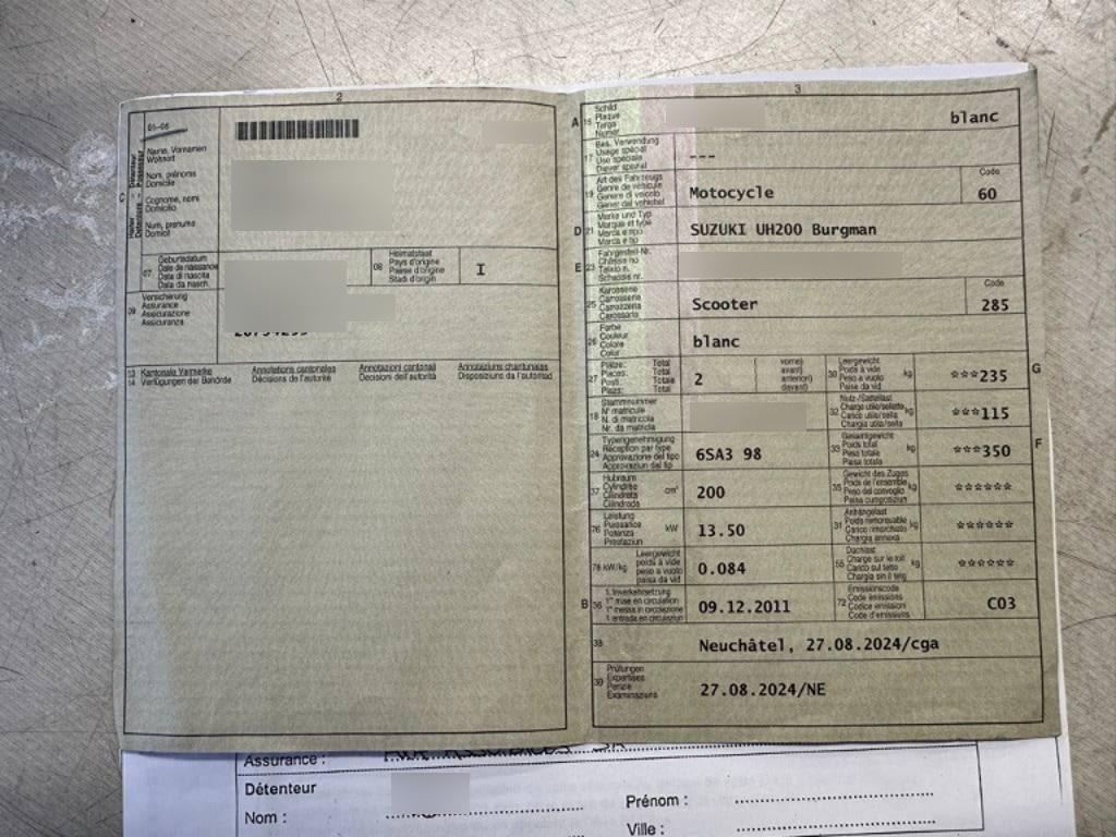 | Fahrzeugausweis | Vorhanden |