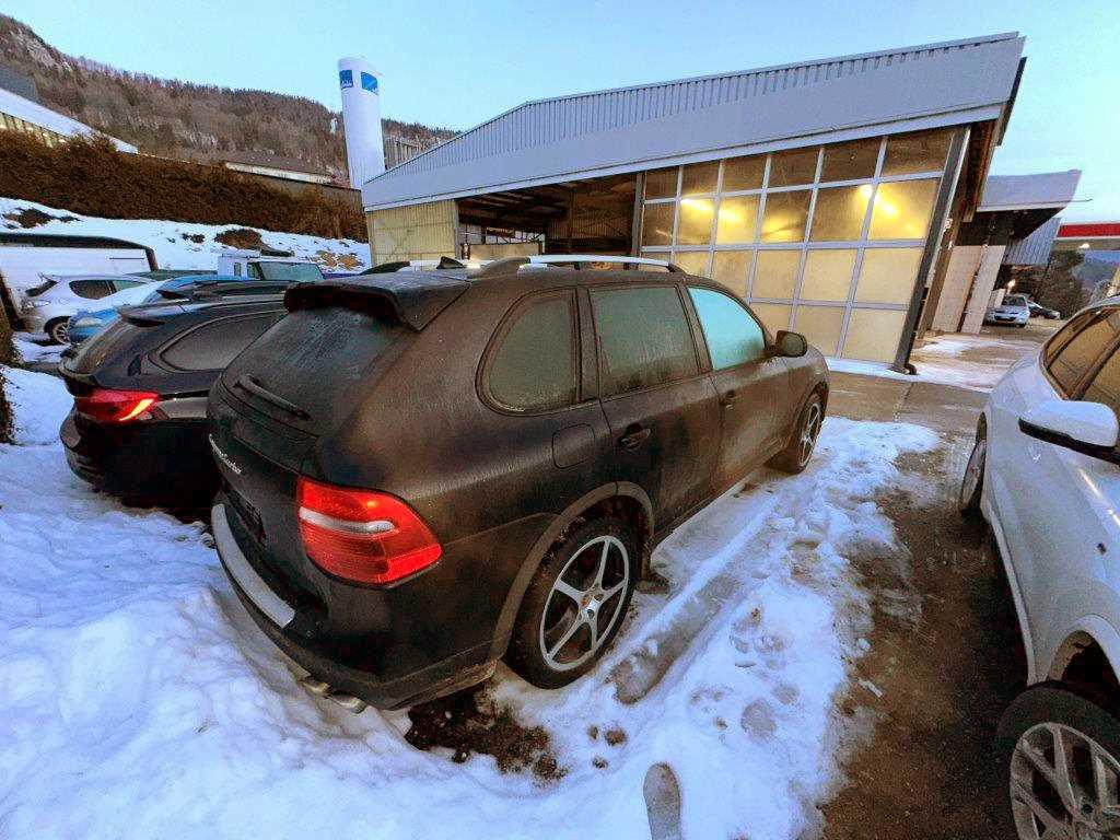 Vorbereitung für CD-Wechsler, Kofferraum-Entriegelung von innen, Park Distance Control vorne und hinten, 3-Punkt-Sicherheitsgurte auf allen Plätzen, Stossstangen und Aussenspiegel in Wagenfarbe, Dachreling Alu-Look, Assist: Seitenaufprall-Schutzsystem, Oeldruckanzeige, Ganzleder-Ausstattung, Kreuzstützen für Vordersitze elektrisch verstellbar, Einstiegsschienen vorne, Aussenspiegel rechts und links beheizt, elektrisch verstell- / und einklappbar, Innenlicht-Abschaltverzögerung, Wartungsintervall-Anzeige, Gurtstraffer vorne und hinten, Getönte Scheiben, Multifunktionsanzeige, Abschliessbare Radschrauben, Bose Soundsystem, Aufklappbare Heckscheibe, Assist: Porsche Traction Management (PTM), Airbag: Seitenairbag für Fahrer und Beifahrer, Schalthebelknauf in Leder, Dachhimmel in Alcantara, Digital Uhr, Ausstiegsleuchten in den Türen, Fussraumbeleuchtung vorne und hinten, Türgriffe aussen in Wagenfarbe, Bremsassistent (BAS), Beleuchtetes und abschliessbares Handschuhfach, Zweiklanghorn, Automatikgurt in Fondmitte, Antiblockiersystem (ABS), Airbag: Airbag Fahrer und Beifahrer, Fahrstabilisierungssystem Porsche - Stability-Management (PSM), Skisack, Airbag: Airbag Beifahrer deaktivierbar, Cupholder vorne und hinten, Schublade unter Beifahrersitz, Brillenablage, ISOFIX Kindersitzvorrichtung, Beide Make up-Spiegel beleuchtet, Sitze: Rücksitzlehne geteilt abklappbar, Diebstahlwarnanlage mit Innenraumüberwachung, Zentralverriegelung mit Fernbedienung, Dachspoiler, Media: Porsche Communication Management (PCM), Elektrische Fensterheber vorne + hinten, Höhenverstellbare Gurten vorne, 3 Kopfstützen hinten, Klimatisierungsautomatik, Licht: Nebelschlussleuchte, Elektrisch verstellbares Lenkrad, Bordcomputer, Stabilisatoren vorne und hinten, Servolenkung, Aktivkohlefilter, Heckscheiben-Wisch-/Waschanlage, Schliesshilfe für Heckklappe, Drittes Bremslicht, Porsche Active Suspension Management (PASM): Luftfederung inkl. Niveau- regulierung, Tageskilometerzähler, Wegfahrsperre elektronisch, Radiovorbereitung, Antenne und Entstörung, Bi-Xenon-Scheinwerfer inkl. Reinigungsanlage, Komfortsitze vorn, elektrisch verstell- bar mit Memory, Laderaumabdeckung, Leuchtweitenregulierung automatisch, Tire Fit (Reifendichtmittel) anstelle Faltrad, Metallpedale, Sicherheitstrennnetz oder /-gitter im Gepäckraum, Vordersitze höhenverstellbar, Steckdose, 6-Stufen-Automat Tiptronic, Mittelkonsole mit Ablagefach, Reduktionsgetriebe, Aschenbecher und Zigarettenanzünder, Leseleuchten hinten, Kartentaschen an den Rückenlehnen, Geteilte Heckklappe, Wassertemperaturanzeige, Nebelscheinwerfer, Antriebsschlupfregelung (ASR), Katalysator geregelt, Drehzahlmesser, Heckscheibenheizung, Armauflage Mittelkonsole vorn mit integriertem Ablagefach, Sitze: Sitzheizung vorne und hinten, Ablagefach in Armlehne hinten, Bremsbelag-Verschleissanzeige, Scheibenwaschdüsen beheizt, Aluminium-Applikationen, Ladedruck-Anzeige, Lackierung: Metallic-Lackierung, Airbag: Window-Kopfairbags, Frontscheibe mit Color-Band, Regensensor für Scheibenwischer vorne, Leseleuchten vorne, Aussentemperaturanzeige, Allradantrieb permanent, Voltmeter, Assist: Tempomat, Tankdeckel-Entriegelung von innen, 4 Leichtmetallräder Cayenne Turbo II Rad 18J, Scheibenwischer vorne mit Intervall