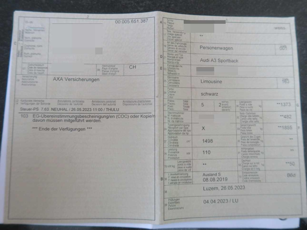 | Fahrzeugausweis | Vorhanden |