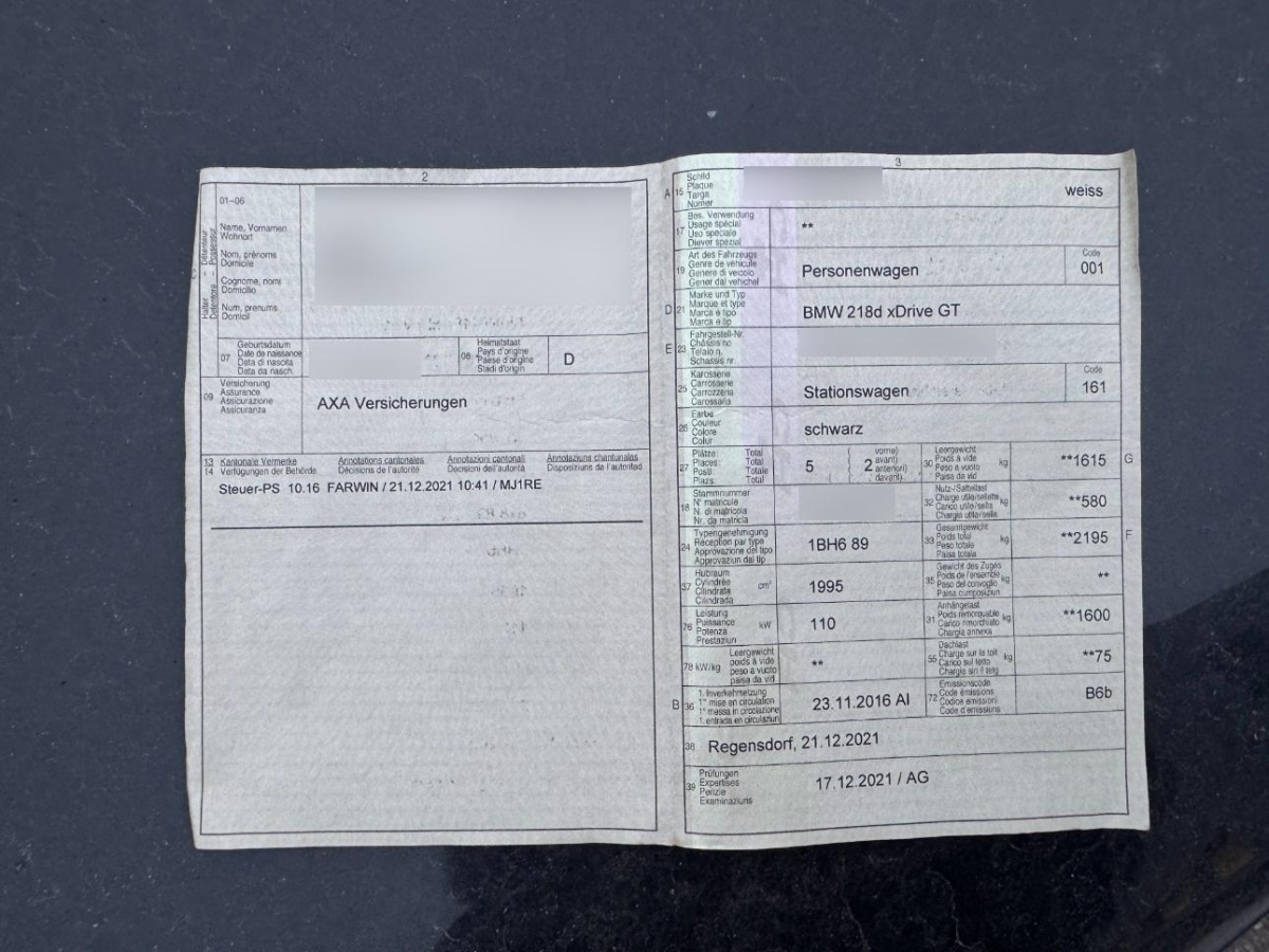 | Fahrzeugausweis | Vorhanden |