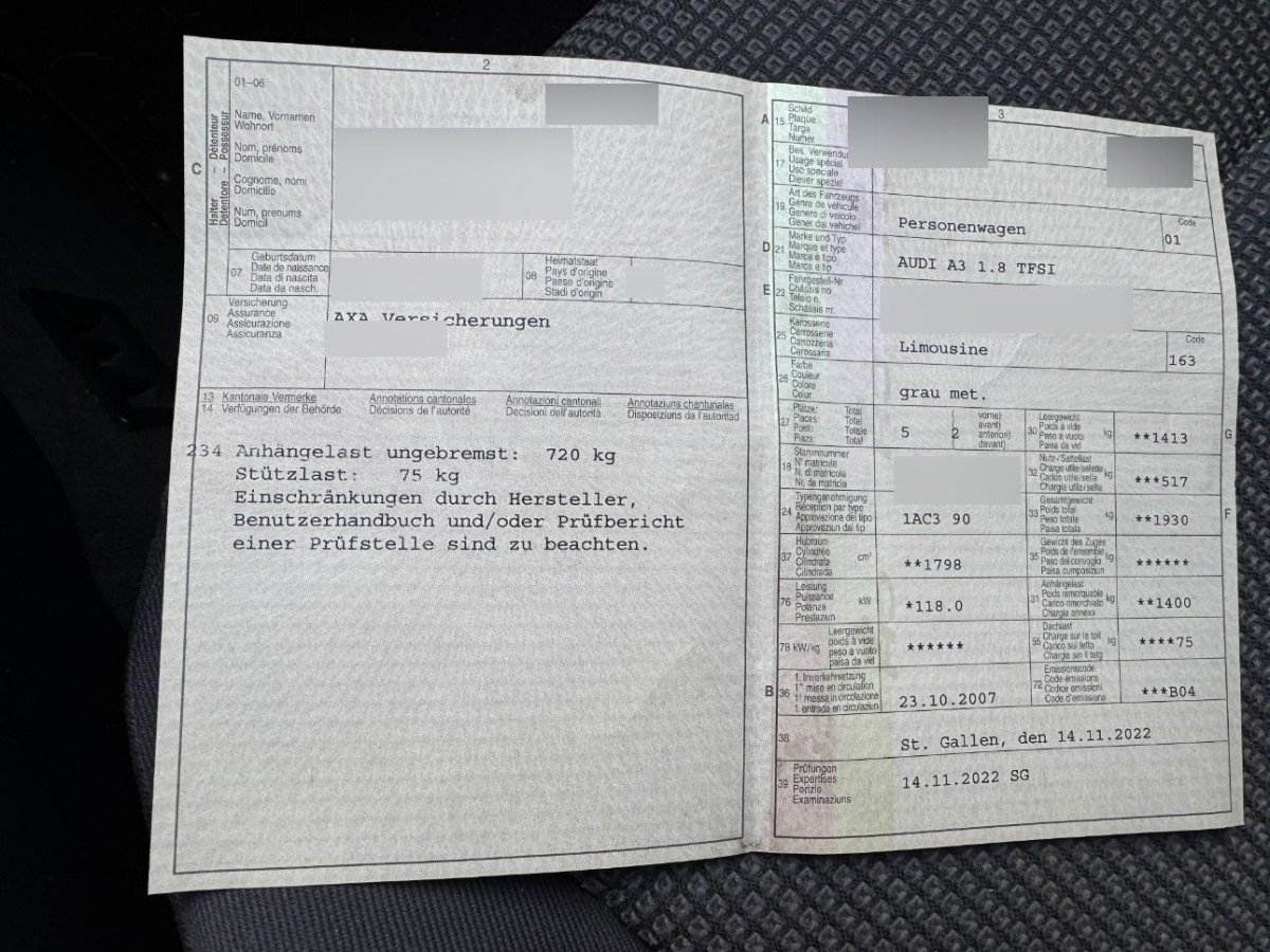 | Fahrzeugausweis | Vorhanden |