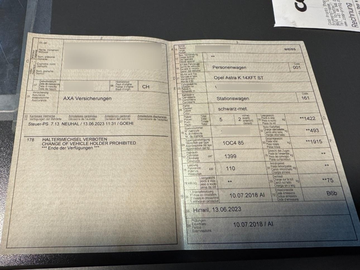 | Fahrzeugausweis | Vorhanden |