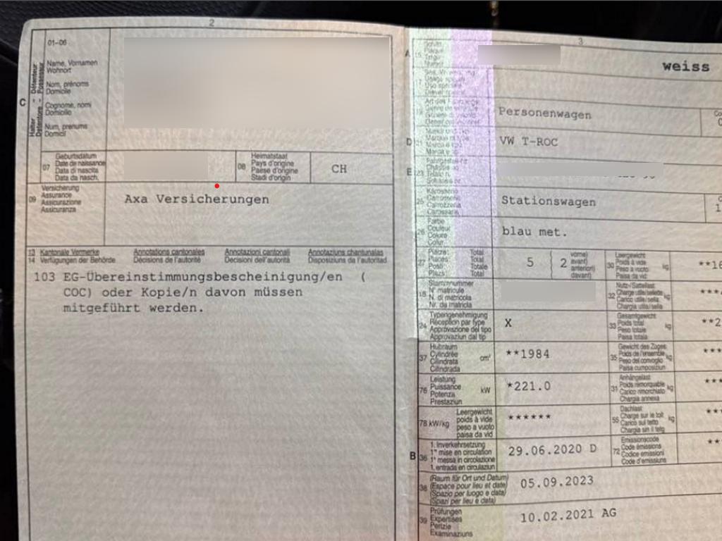 | Fahrzeugausweis | Vorhanden |