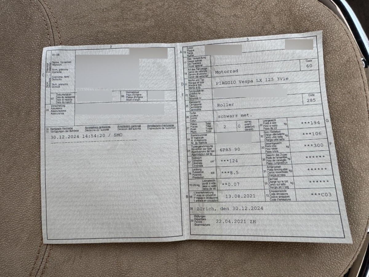 | Fahrzeugausweis | Vorhanden |