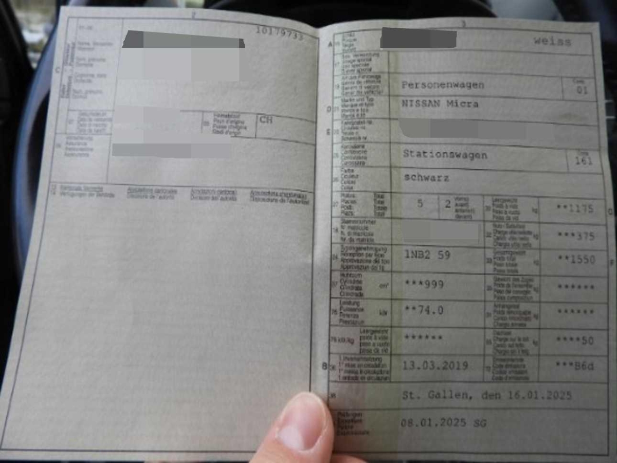 | Fahrzeugausweis | Vorhanden |
