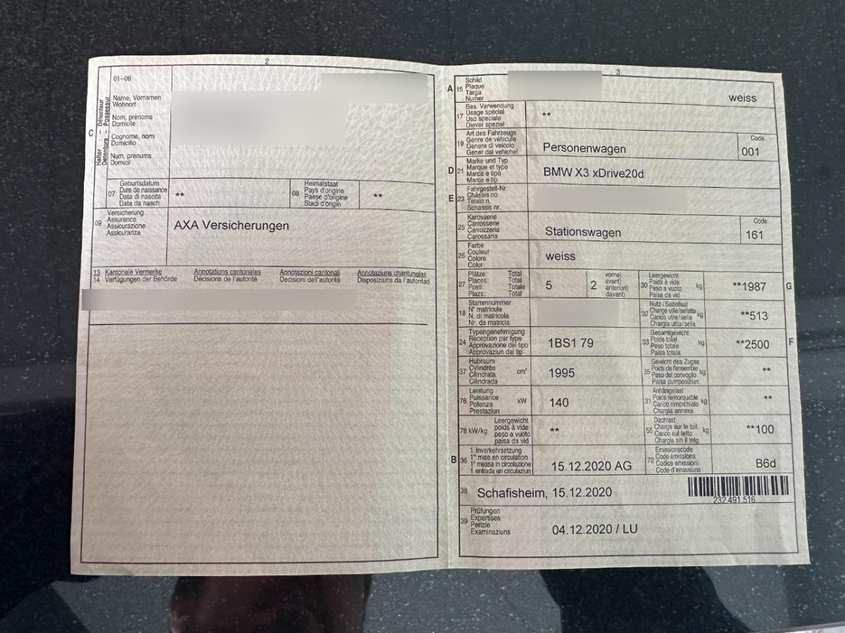 | Fahrzeugausweis | Vorhanden |
