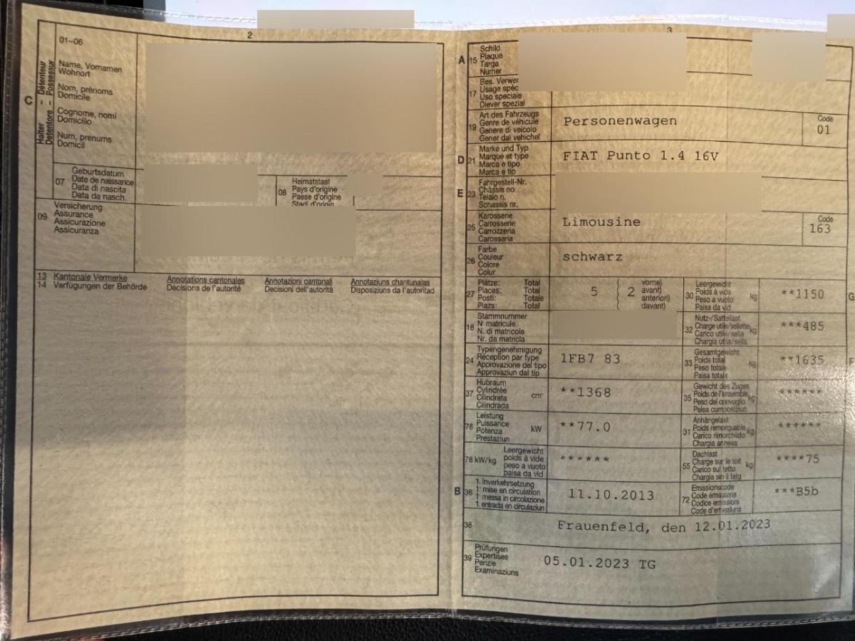 | Fahrzeugausweis | Vorhanden |