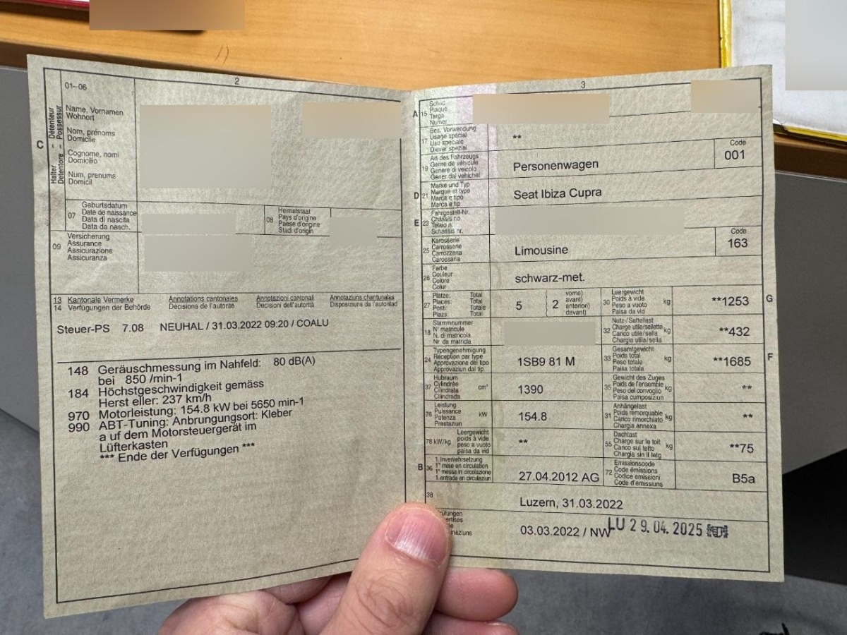 | Fahrzeugausweis | Vorhanden |