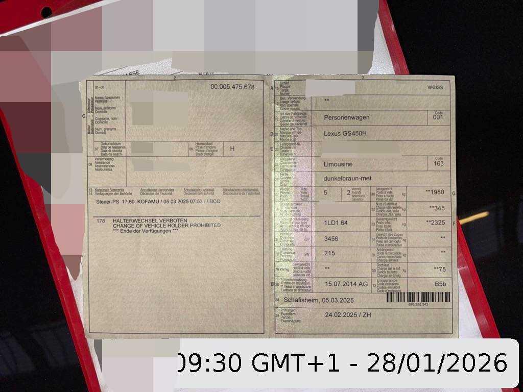 | Fahrzeugausweis | Vorhanden |