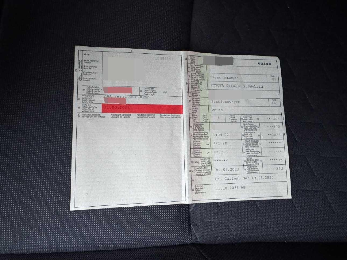 Assist: Auffahrwarnung (Pre-Collision Assist) Bremsassistent, Fussgängererkennung, warnung optisch und akustisch, Regensensor für Scheibenwischer vorne, Media: Bluetooth-Schnittstelle, Smart Entry-/Start-System, Media: Toyota Touch 2 mit 8" Display, mit Smartphone Integration, Lenkrad: Lenkrad, Schaltknauf und Handbremshebel Leder, Airbag: Airbag Fahrer und Beifahrer, Lenkrad: Lenkradheizung, Zentralverriegelung mit Fernbedienung, Licht: Bi-LED Scheinwerfer, Multiinformationsdisplay 7", Airbag: Seitenairbag für Fahrer und Beifahrer, Licht: Drittes Bremslicht, Heckklappe, elektrisch betrieben mit Kick-Open-Funktion, Dachreling, Sitze: Vordersitze heizbar, Doppelter Gepäckraumboden, Kühlergrill schwarz glänzend, Sitze: Beifahrersitz höhenverstellbar, Lenkrad: Lenkrad längs- und höhenverstellbar, Heckscheibenheizung, Sitze: Fahrersitz mit Lendenwirbelstütze (elektrisch einstellbar), Beleuchtetes Einstiegssystem, Stabilitätskontrolle (VSC), Heckscheibenwischer, Assist: Rückfahrkamera mit Führungslinien, Lackierung: Uni-Lackierung, Media: DAB+ (Digital Audio Broadcasting), Räder: Reifenreparatur-Set (Tire Fit), Elektrische Fensterheber vorne + hinten mit Komfortschliessung, Gepäckraumbeleuchtung, Assist: Spurhalteassistent (LKA) mit Spurverlasswarner (LDA) und aktiver Lenkunterstützung, Media: Kabellose Smartphone Integration Apple CarPlay, Räder: TPMS Reifendrucküberwachungssystem, ABS, EBD elektronische Bremskraftverteilung, Licht: Fernlicht-Automatik (AHB), Media: Smartphone Integration (Apple CarPlay/Android Auto), Mittelarmlehne hinten, Heckscheibe und hintere Seitenscheiben getönt, Airbag: Knie-Airbag für Fahrer, Servolenkung, Licht: Ambientebeleuchtung, Kabellose Ladestation für mobile Geräte (Qi), Acoustic Vehicle Alerting System (AVAS), Sitze: Fahrersitz höhenverstellbar, Bordcomputer, Luftausströmer hinten, 3-Punkt-Sicherheitsgurte auf allen Plätzen, Licht: Nebelschlussleuchte, ISOFIX Kindersitzvorrichtung, Assist: Müdigkeitserkennung, Pollenfilter (Staubfilter), Getriebe: Stufenloser Automat, Katalysator geregelt, Innenrückspiegel, elektrochromatisch (automatisch abblendend), Lenkrad: Multifunktionslenkrad, Licht: LED Nebelscheinwerfer, Airbag: Airbag Beifahrer deaktivierbar, Polster: Teilleder-Ausstattung, Assist: Verkehrszeichenerkennung (RSA), Start-/Stop-Knopf, Airbag: Window-Kopfairbags, Media: USB-Anschluss, Wegfahrsperre elektronisch, Elektrische Feststellbremse, Garantie: Toyota Hybrid Garantie 5 Jahre auf Hybridkomponenten oder 100 000 km, Klima: 2-Zonen-Klimaautomatik, Assist: Adaptiver Tempomat ACC, Sitze: Rücksitze, im Verhältnis 60:40 manuell umklappbar, Aussenspiegel rechts und links beheizt, elektrisch verstell- / und einklappbar, Media: 6 Lautsprecher, Räder: 17"-Leichtmetallfelgen, 225/45-R17-Reifen, Media: Toyota Smart Connect (T1) mit 8" HD Bildschirm, Cloud-Navigationssystem, Teppichfussmatten