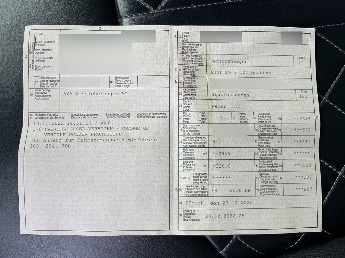 | Fahrzeugausweis | Vorhanden |