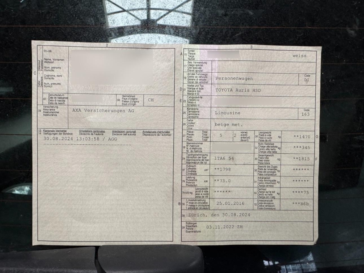 | Fahrzeugausweis | Vorhanden |