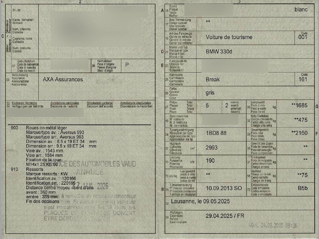 | Fahrzeugausweis | Vorhanden |