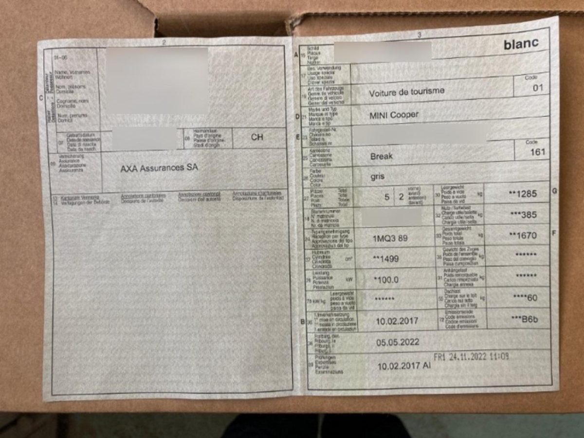 | Fahrzeugausweis | Vorhanden |