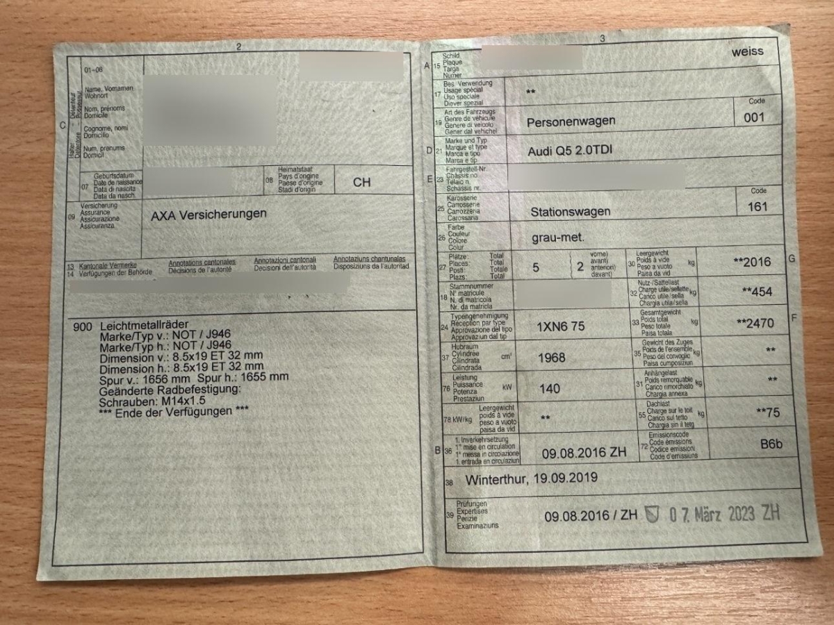 | Fahrzeugausweis | Vorhanden |