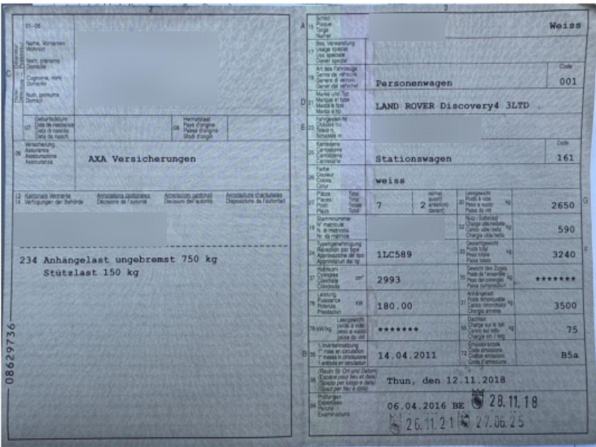 | Fahrzeugausweis | Vorhanden |