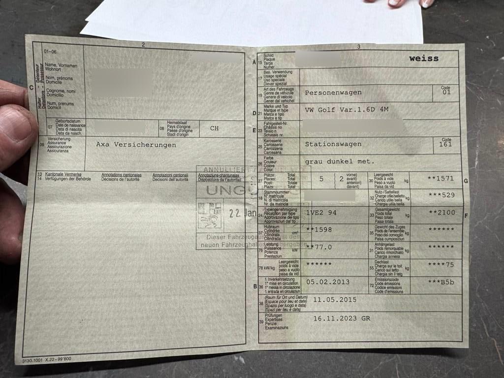 | Fahrzeugausweis | Vorhanden |