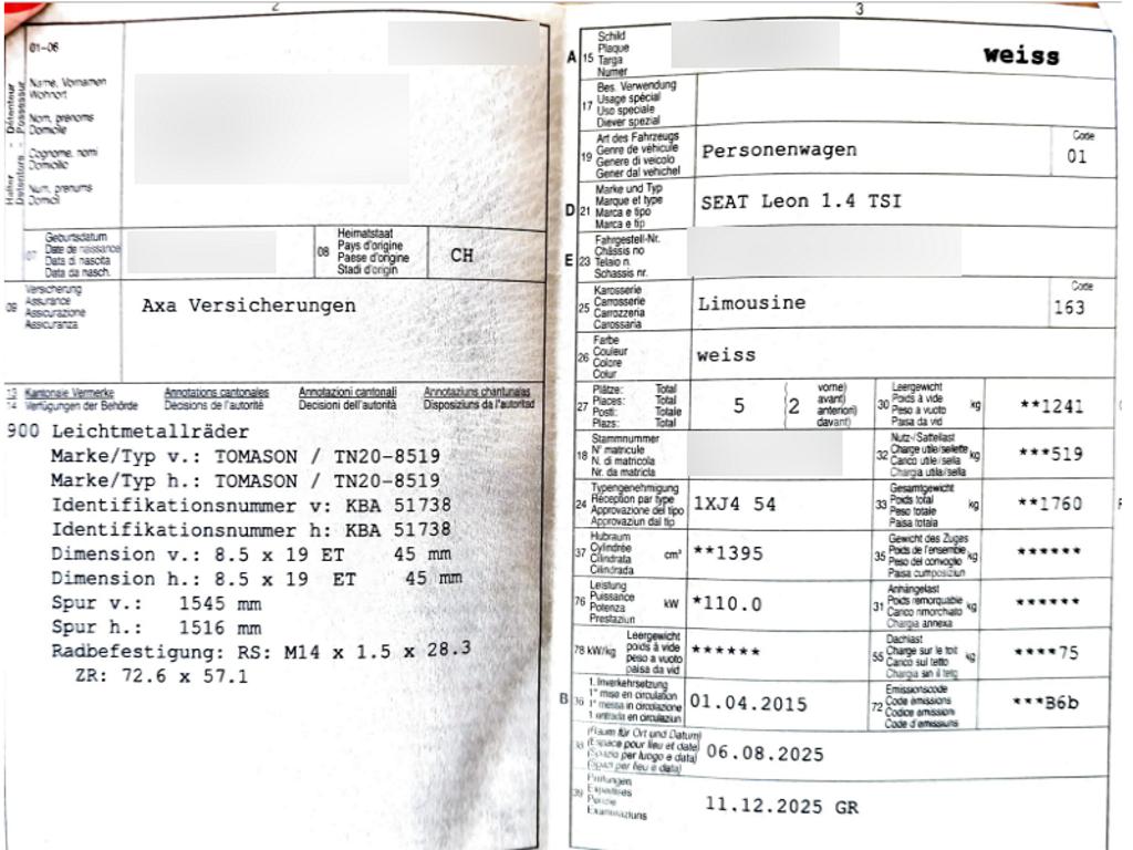 | Fahrzeugausweis | Vorhanden |