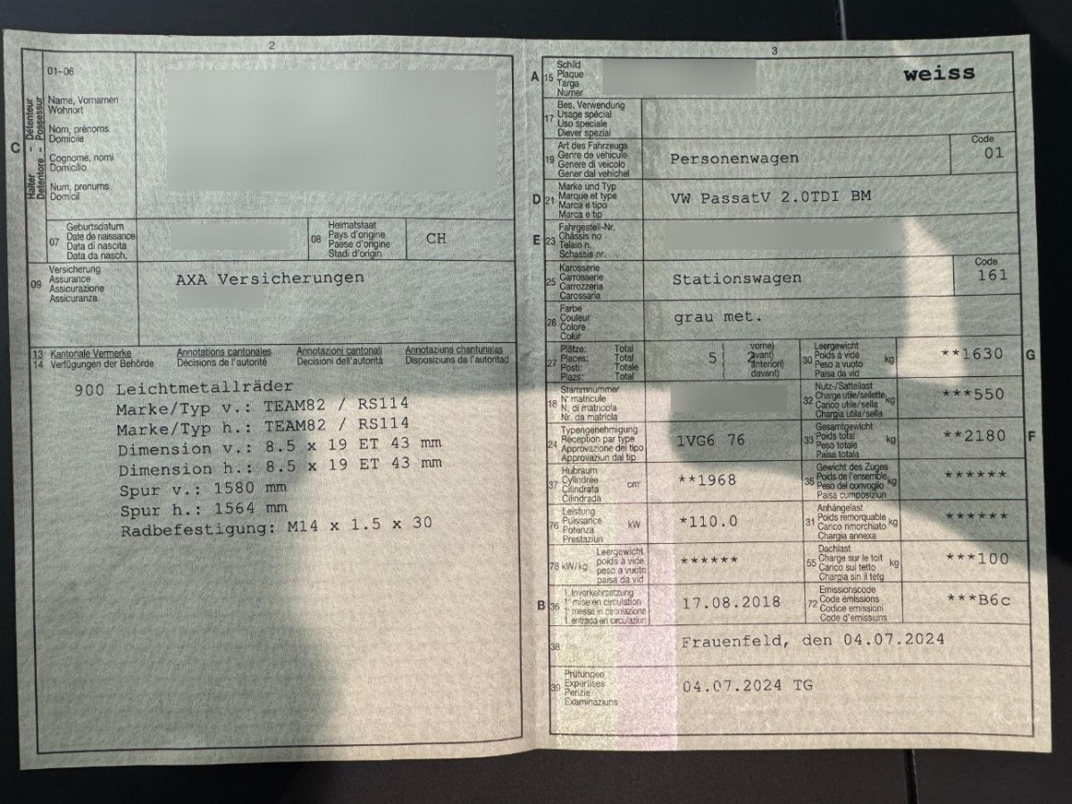 | Fahrzeugausweis | Vorhanden |