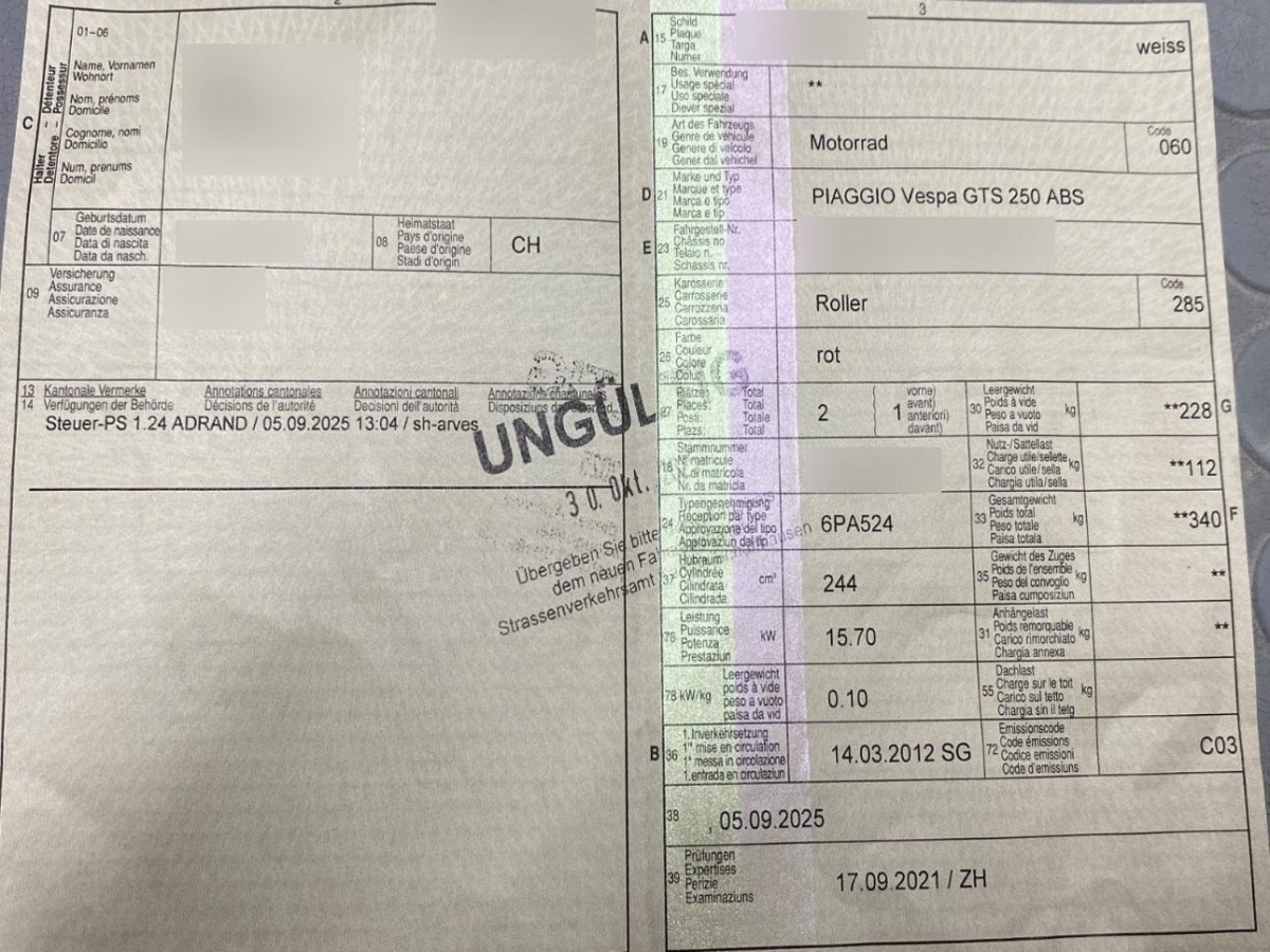 | Fahrzeugausweis | Vorhanden |