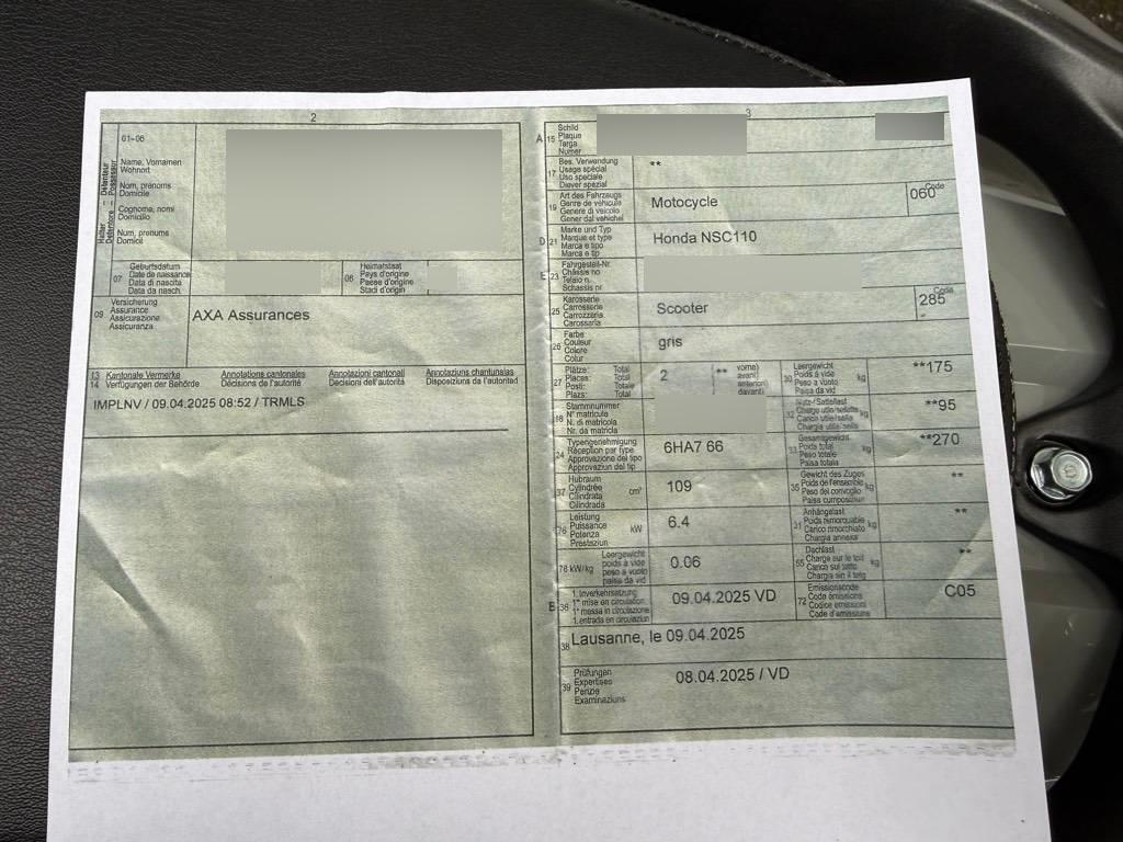 | Fahrzeugausweis | Vorhanden |