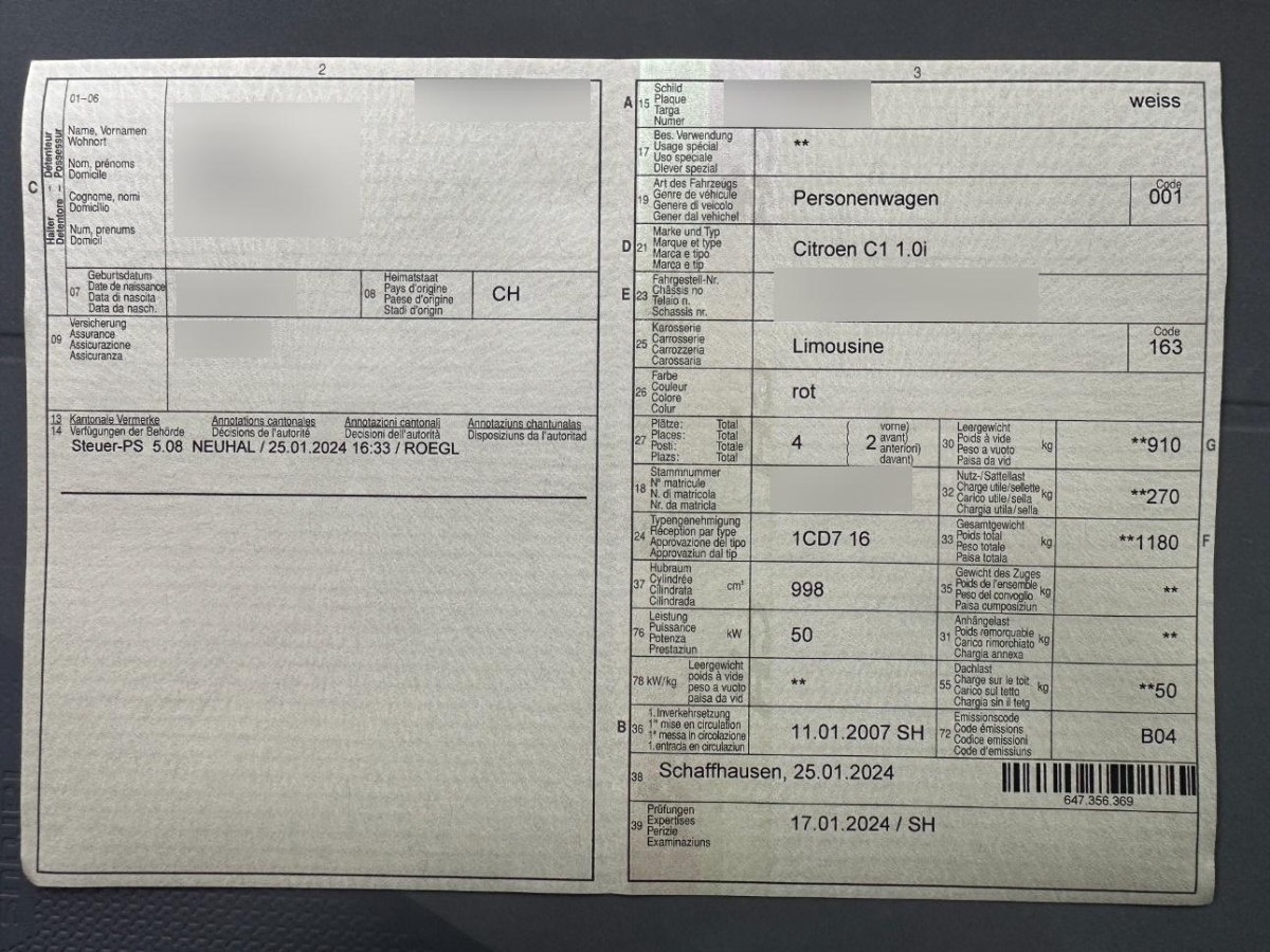| Fahrzeugausweis | Vorhanden |