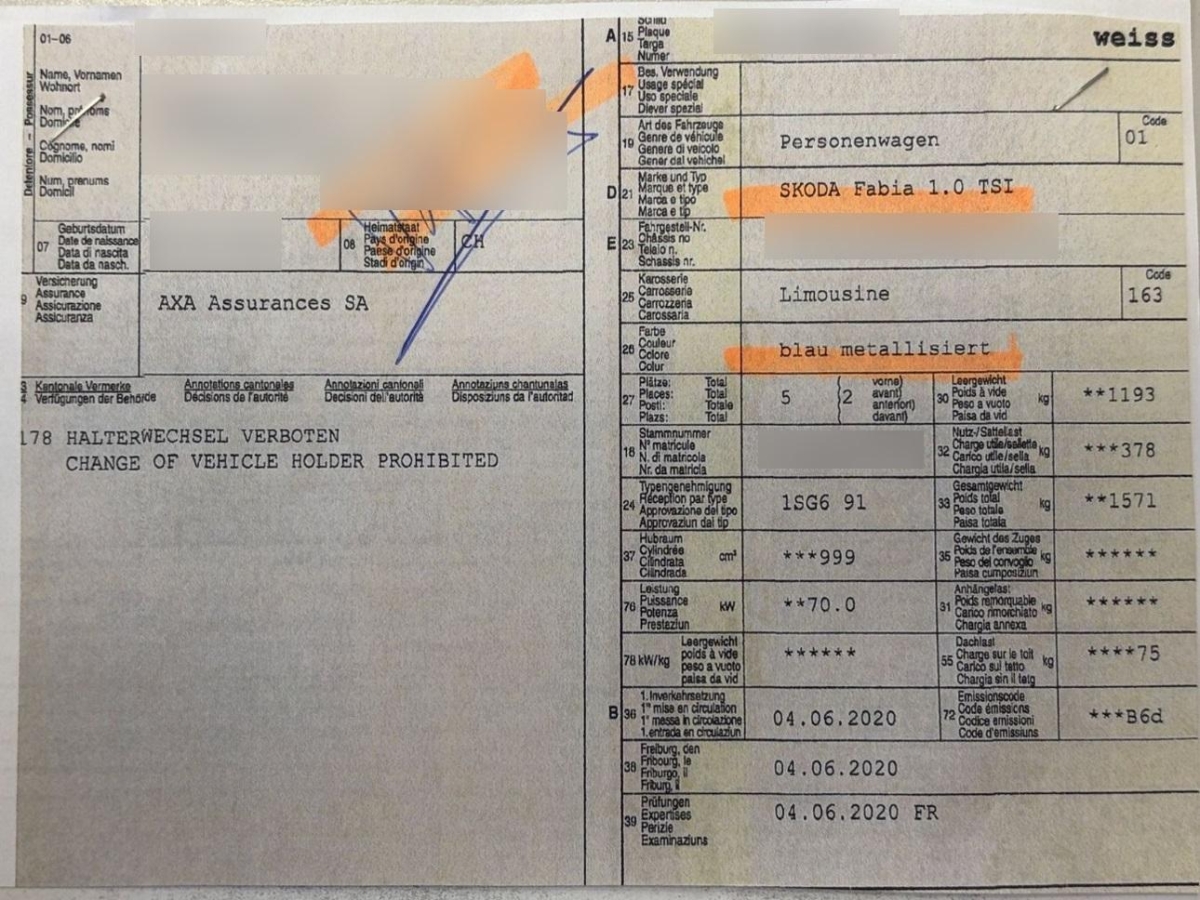 | Fahrzeugausweis | Vorhanden |