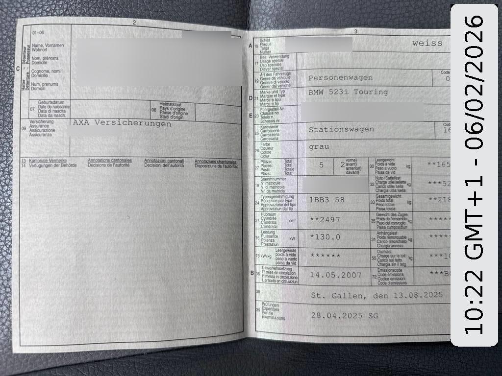 | Fahrzeugausweis | Vorhanden |