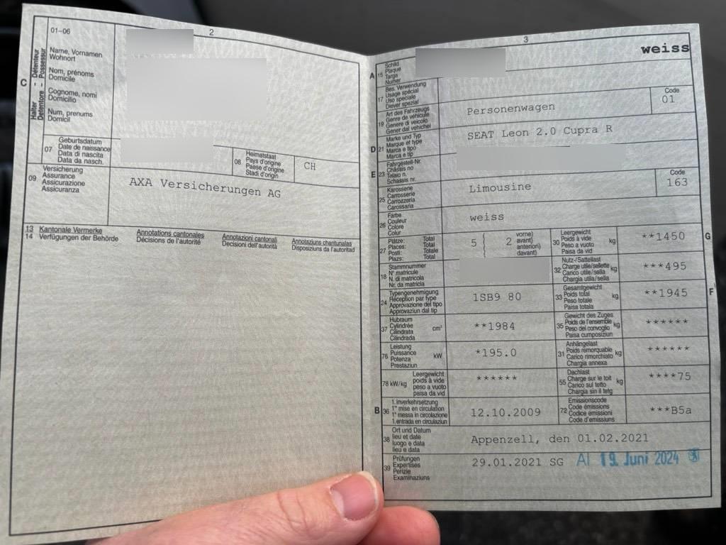 | Fahrzeugausweis | Vorhanden |