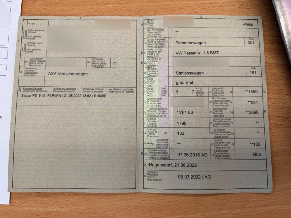 | Fahrzeugausweis | Vorhanden |