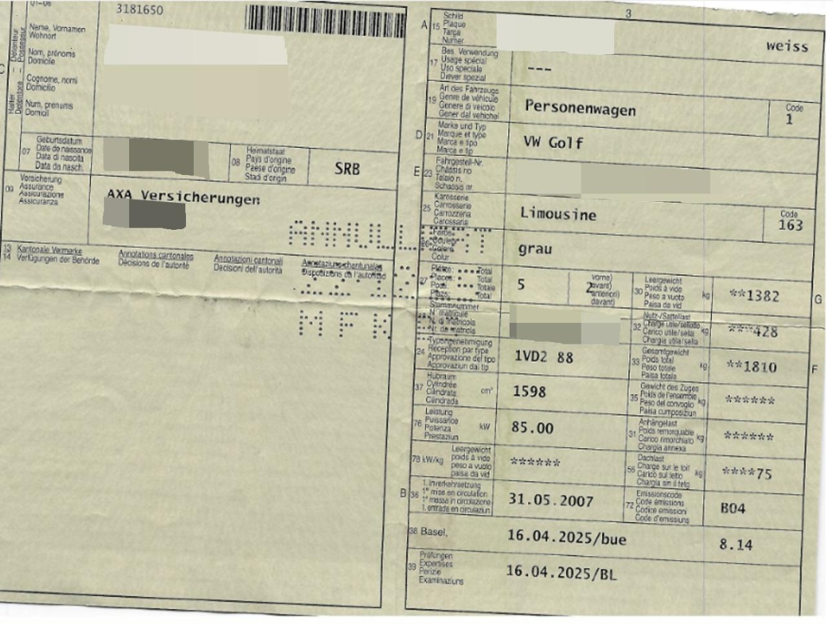 | Fahrzeugausweis | Vorhanden |