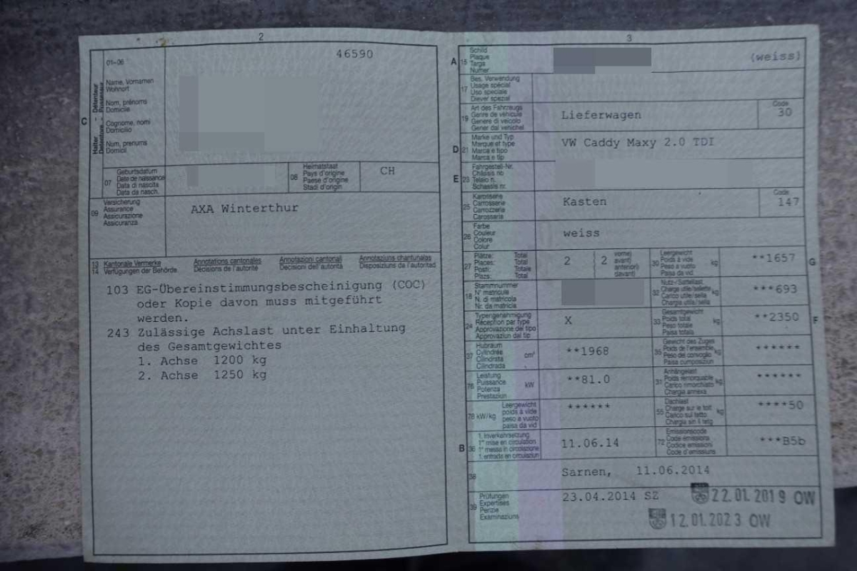 Servolenkung geschwindigkeitsabhängig, Laderaumtrennwand, Radiovorbereitung, Antenne, Entstörung und 2 LS, Wegfahrsperre elektronisch, Digital Uhr, Licht: Drittes Bremslicht, Licht: Nebelschlussleuchte, Zentralverriegelung m. Funkfernbedienung Safesicherung und Innenbetätigung, Türen: Schiebetüre rechts, Gurtstraffer vorne, Bodenbelag aus Gummi im Fussraum vorne, Cupholder vorne, Stoff-Ausstattung, Handschuhfach, ABS mit ASR und EDS, Verkleidung des Laderaums bis Höhe Brüstungsgurt (Hartfaser), Berganfahrassistent, Scheibenwischer vorne mit Intervall, Allradantrieb permanent, 6-Gang-Getriebe, Partikelfilter und Oxydationskatalysator, Elektronisches Stabilitäts-Programm (ESP), Airbag Fahrerseite, Mittelkonsole mit Ablagefach, Pollenfilter (Staubfilter), Ablagefach im Dachbereich, Multifunktionsanzeige plus, Elektrische Fensterheber vorne, Laderaumboden verblecht, Lenkrad längs- und höhenverstellbar, Befestigungsösen im Laderaum, Stahlräder 15J, 12-Volt-Steckdose vorne, Reifenreparatur-Set mit Kompressor, Wärmeschutzverglasung, Laderaumbeleuchtung, Flügeltüren hinten mit Fenster, Drehzahlmesser, Leuchtweitenregulierung von innen, Ablagen in den Türen, Höhenverstellbare Gurten vorne, Aussenspiegel rechts und links beheizbar und elektrisch verstellbar